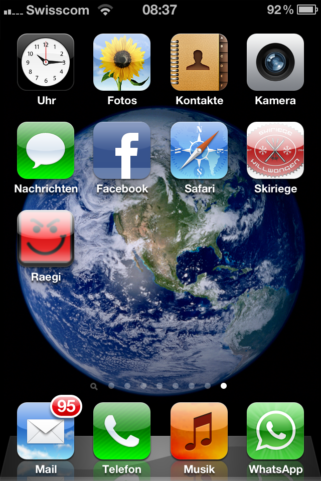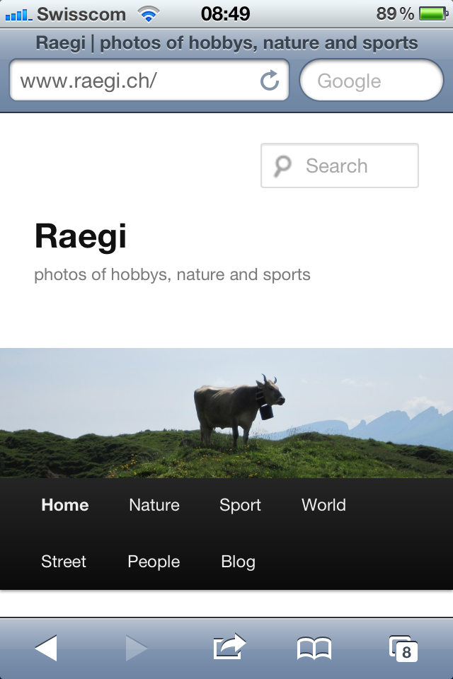 www.raegi.ch auf deinem iPhone. Mit folgendem Trick, sieht die Mobile-Webseite aus wie eine iPhone-App..