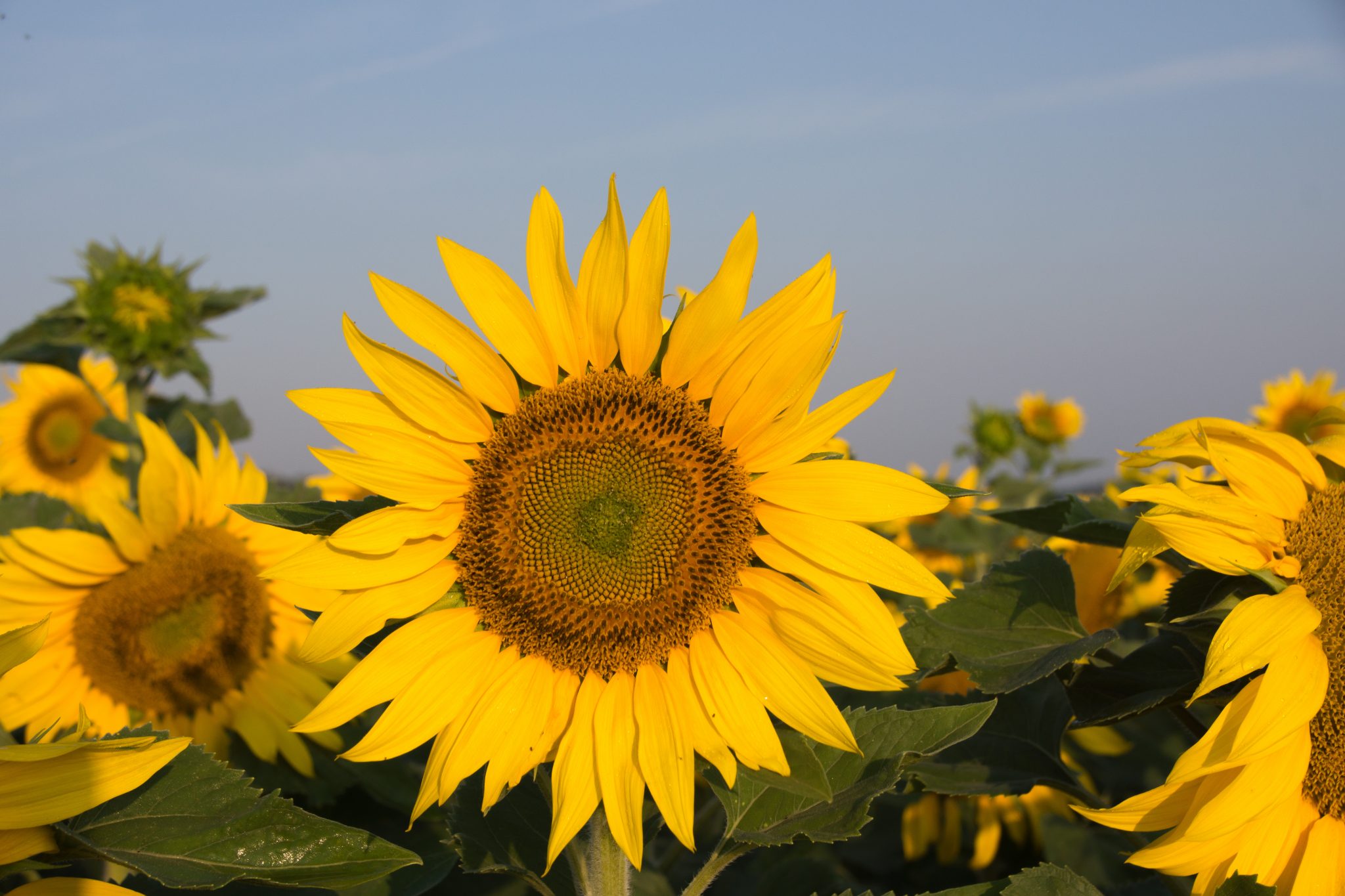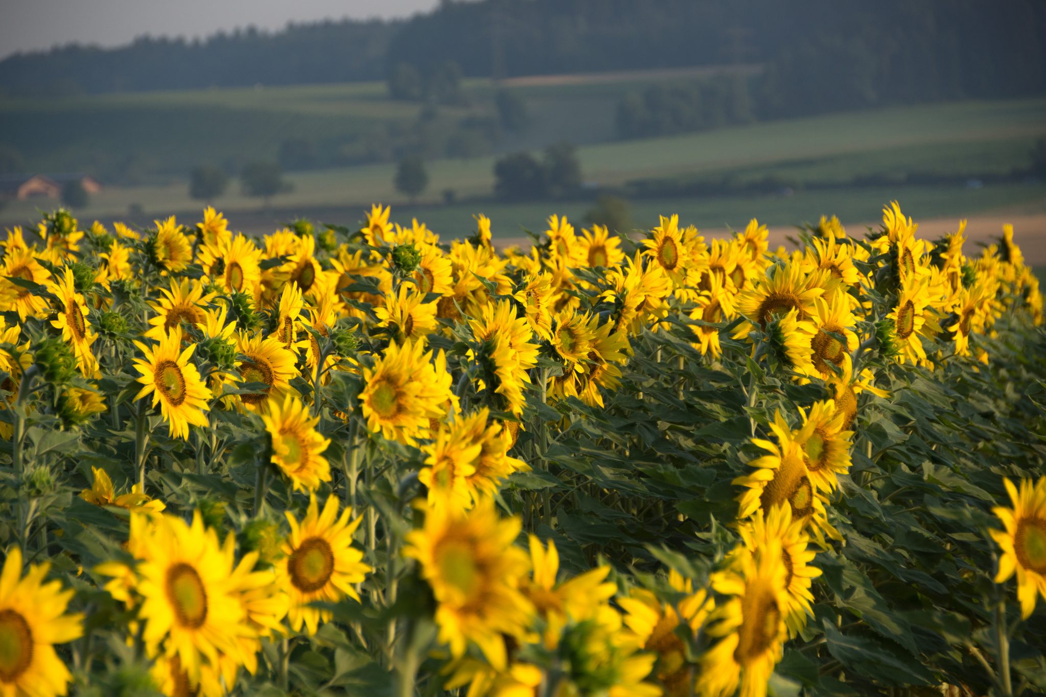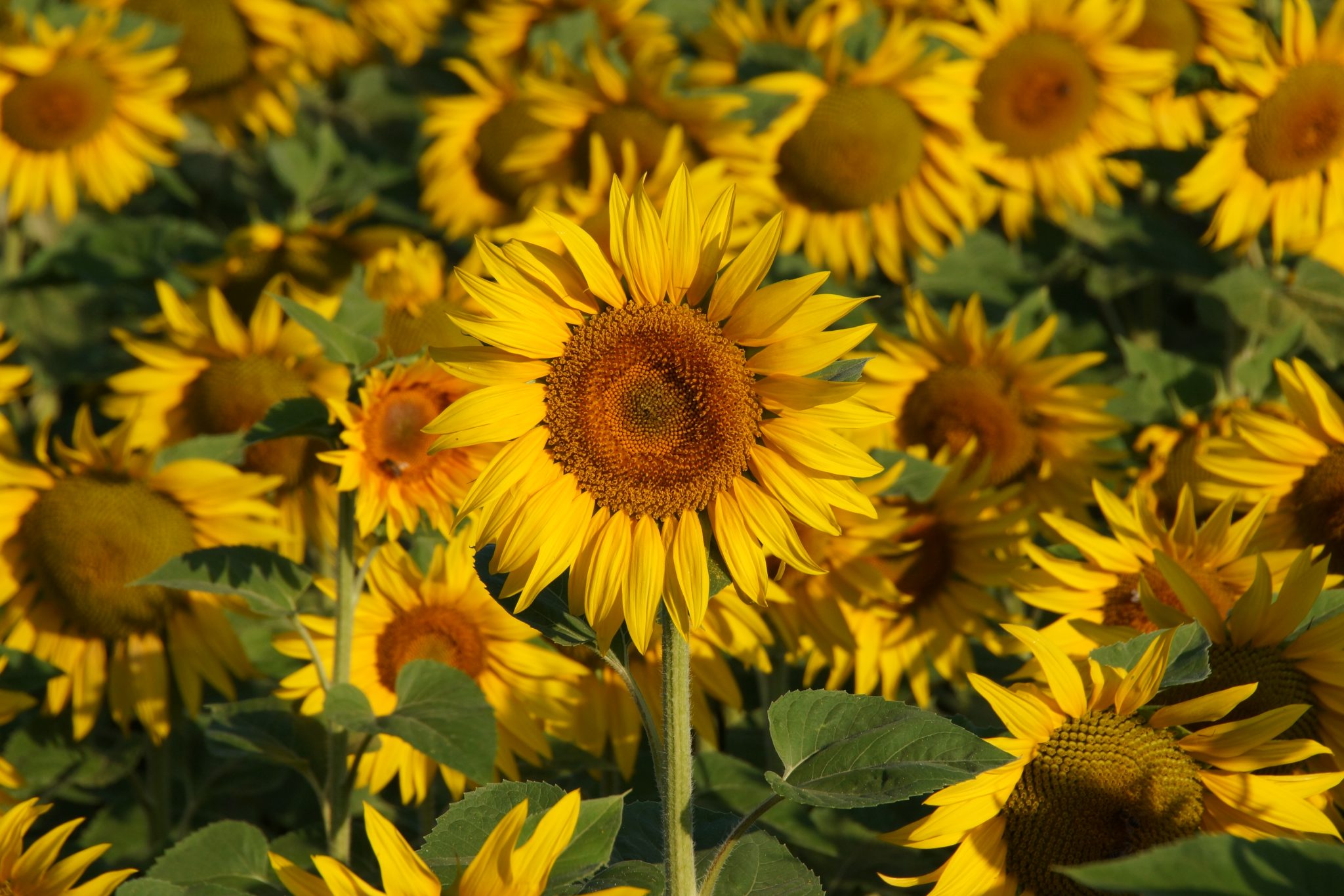 Die Sonnenblumen haben die Eigenschaft, dass sie immer zur Sonne blicken. So schauen sie am Morgen Richtung Osten und am Abend in Richtung Westen. Dies funktioniert aber nur solange die Pflanze noch nicht am blühen ist. Dannach sind sie nicht mehr phototrop und blicken hauptsächlich gegen Osten. Die ganze Kopfverdreherei wird einem irgendwann wohl mal zu bunt.