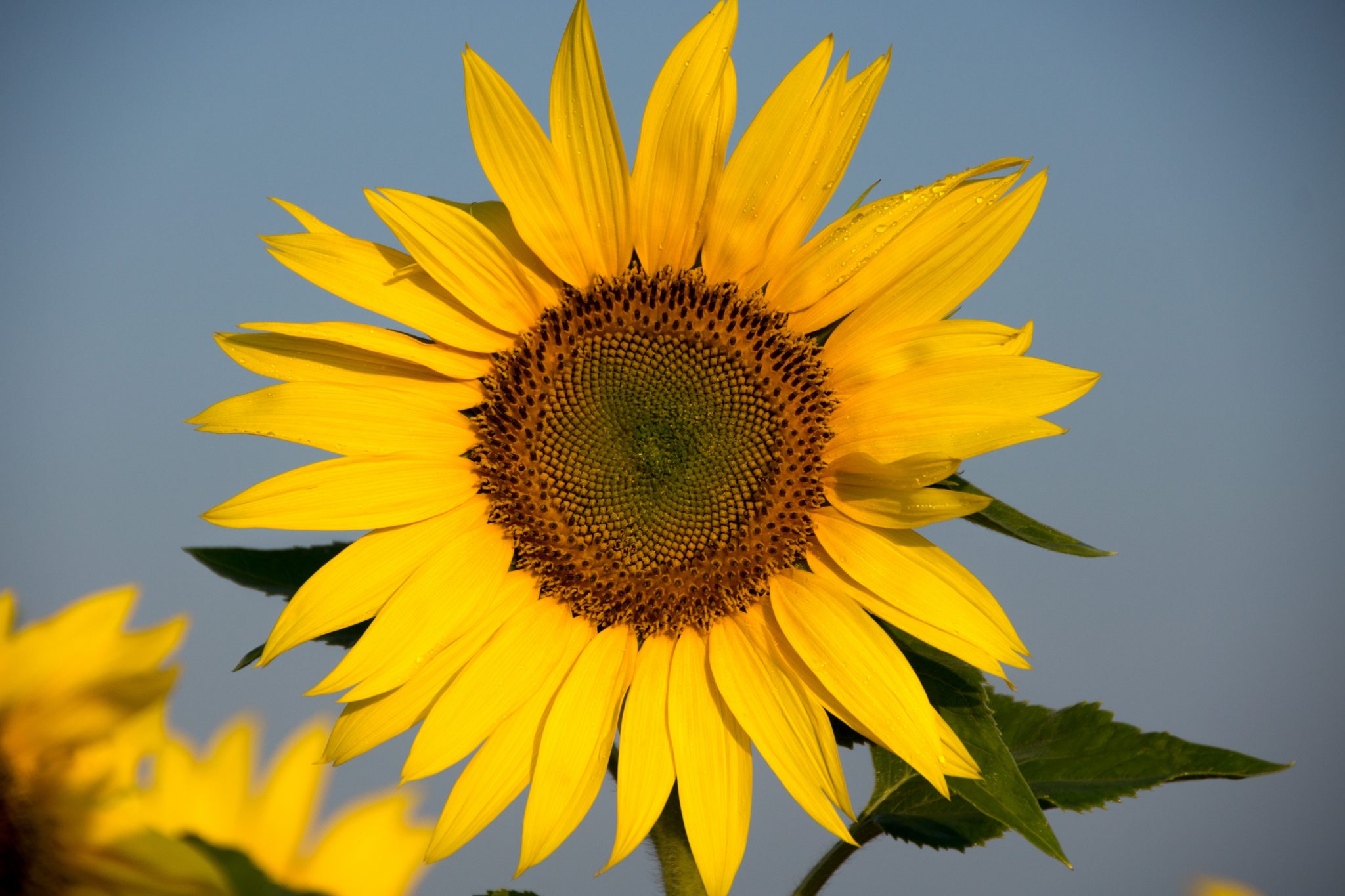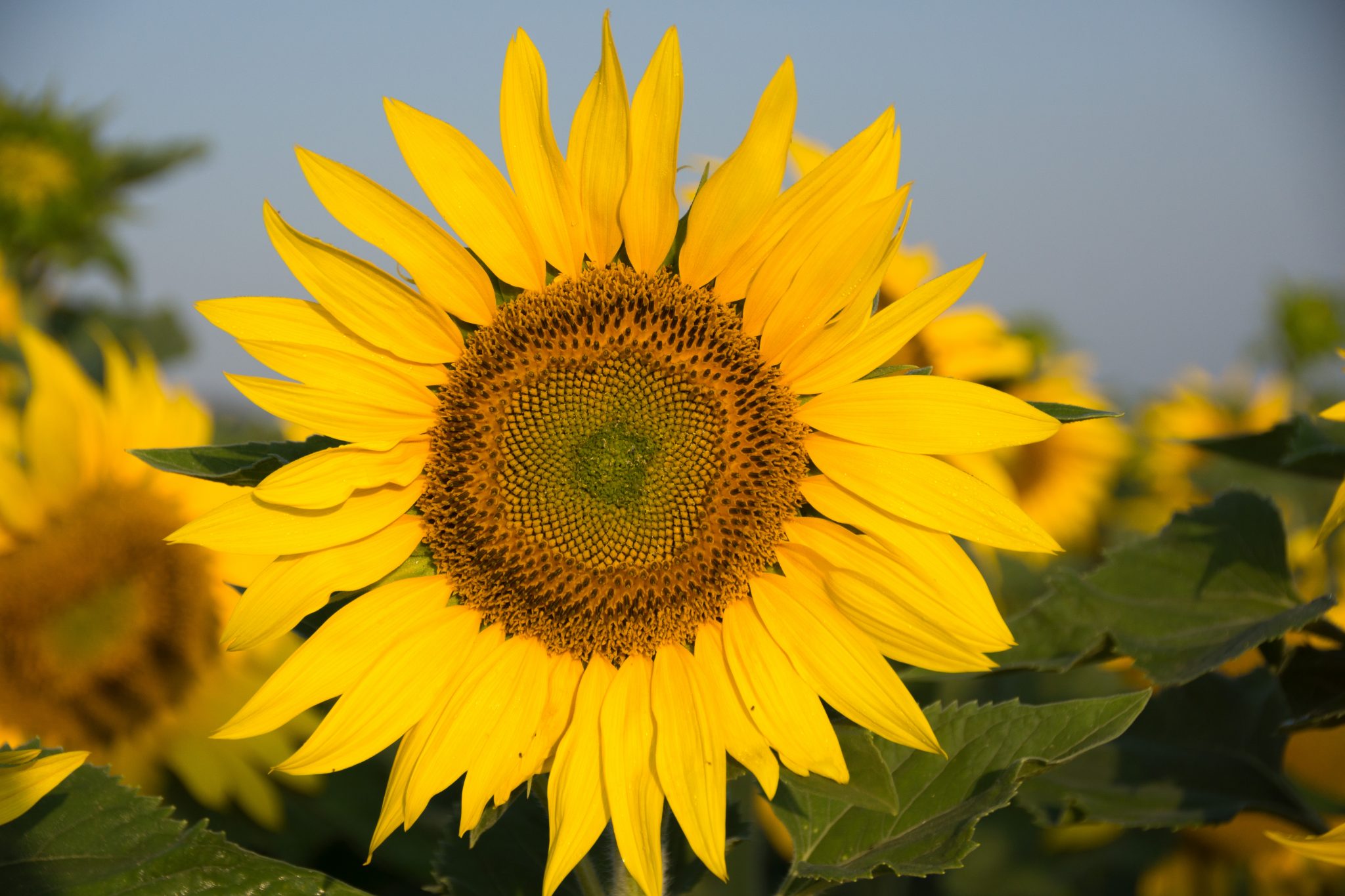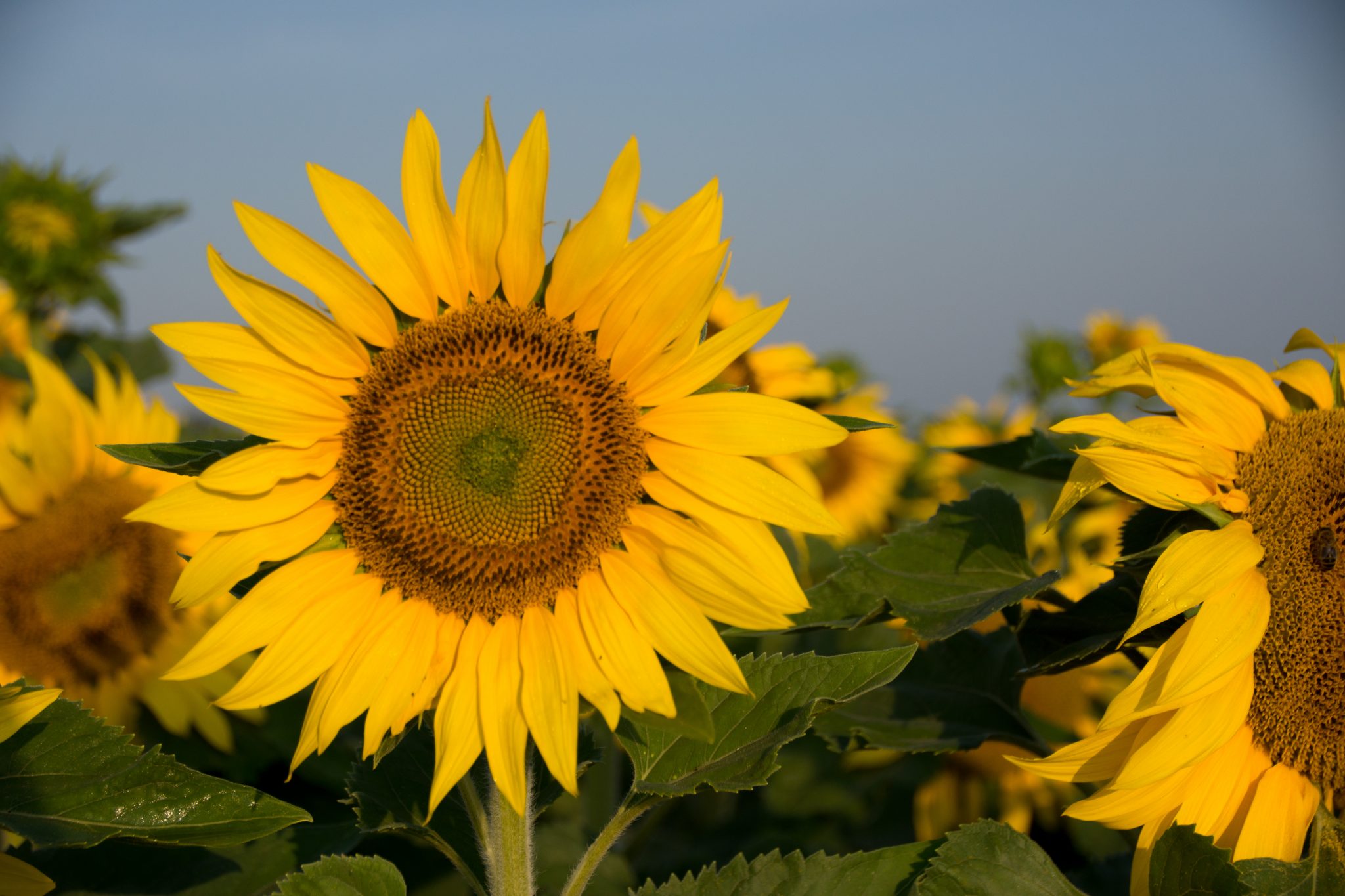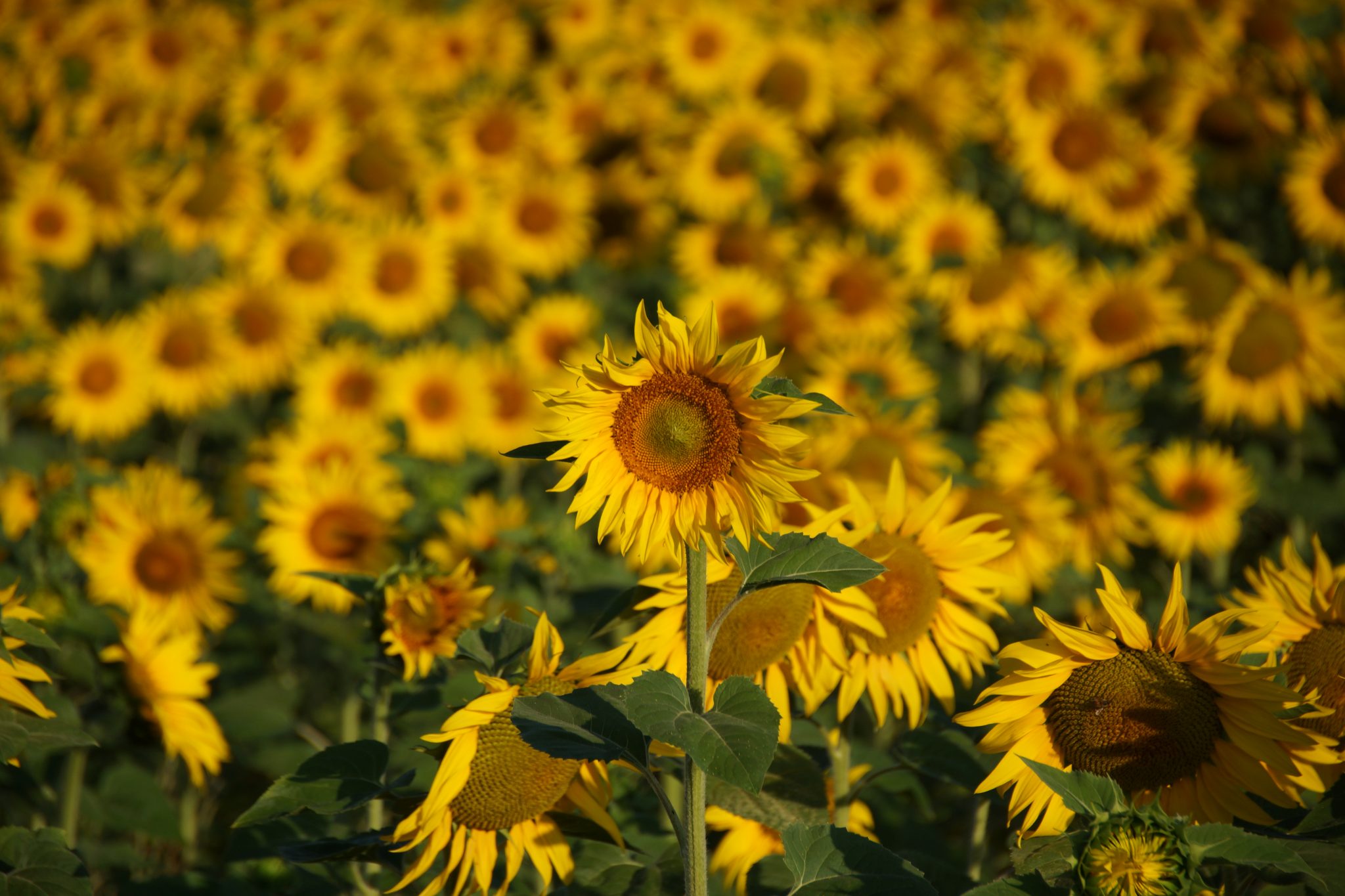 Die Sonnenblumen haben die Eigenschaft, dass sie immer zur Sonne blicken. So schauen sie am Morgen Richtung Osten und am Abend in Richtung Westen. Dies funktioniert aber nur solange die Pflanze noch nicht am blühen ist. Dannach sind sie nicht mehr phototrop und blicken hauptsächlich gegen Osten. Die ganze Kopfverdreherei wird einem irgendwann wohl mal zu bunt.