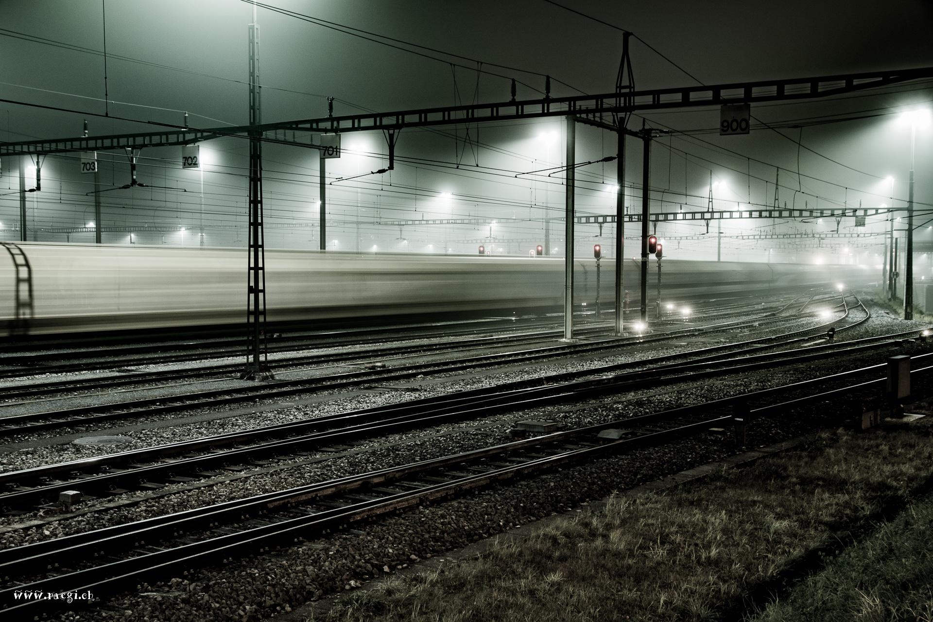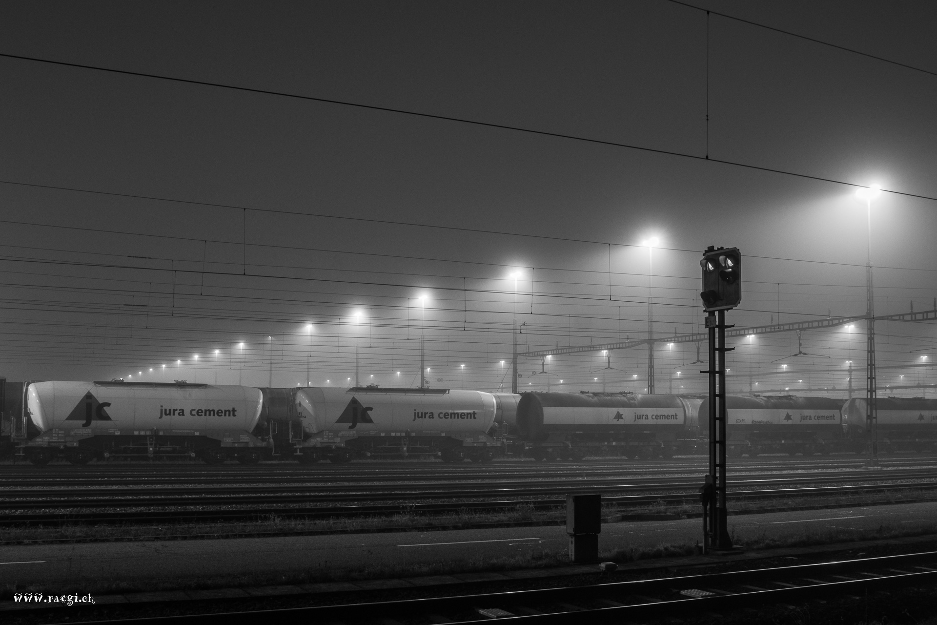 Güterbahnhof bei Nacht und Nebel