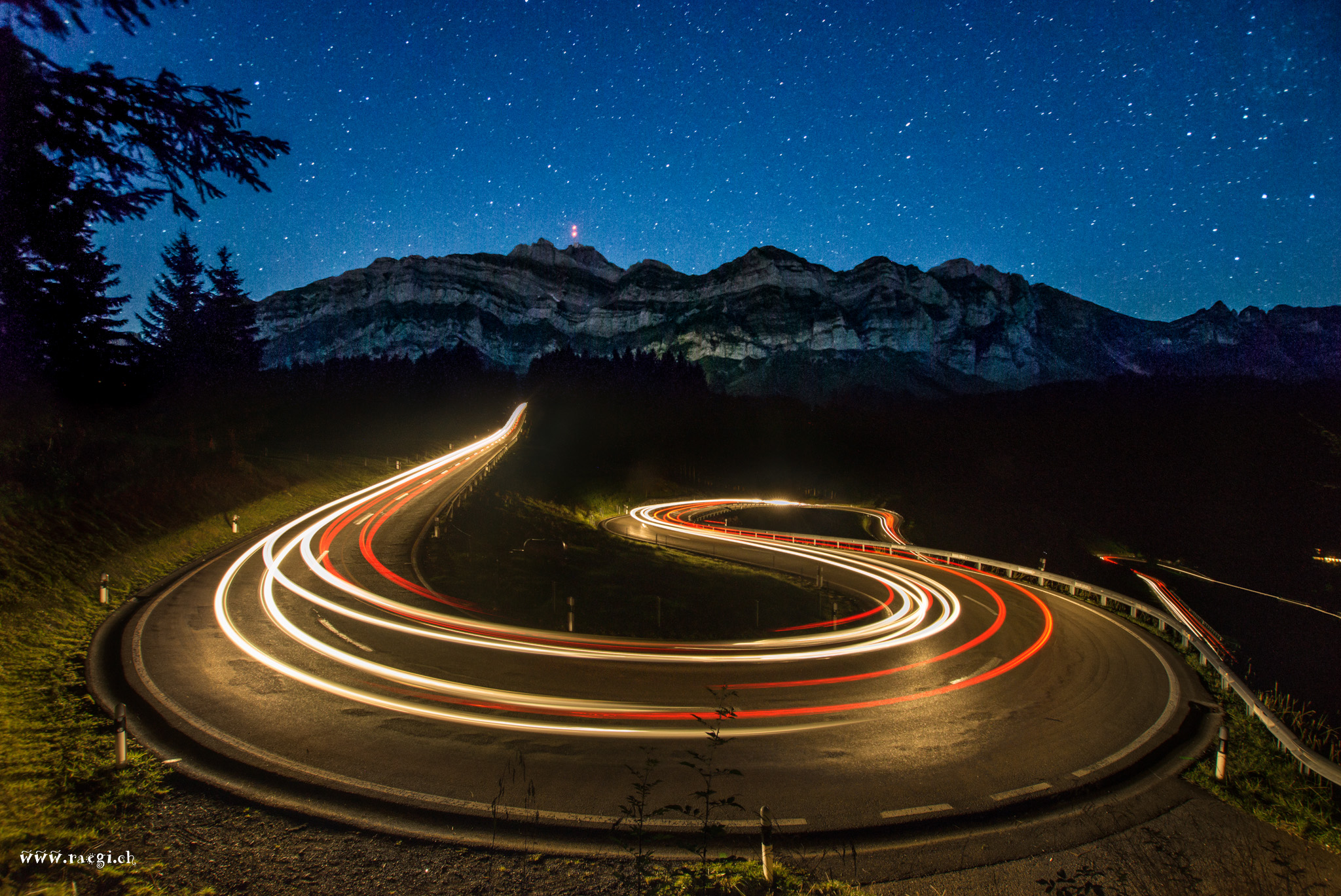 Wenn sich die Nacht über dem Seealpsee ausdehnt, wird es sehr schnell sehr dunkel… Plötzlich trägt es über den See eine Stimme aus der Dunkelheit, welche ein Ave Maria singt. – Gänsehaut – vermutlich ein Alpwirt, welcher für die wunderbare Landschaft und das schöne Wetter danken möchte. Dann nur noch Kuhglocken-Gebimbel.. und dann erscheint sie, wie berechnet leider nicht gerade über dem See, sondern leicht links versetzt – Die Milchstrasse… Wenn ich den Text kennen würde, wäre jetzt auch von mir ein Ave Maria fällig…