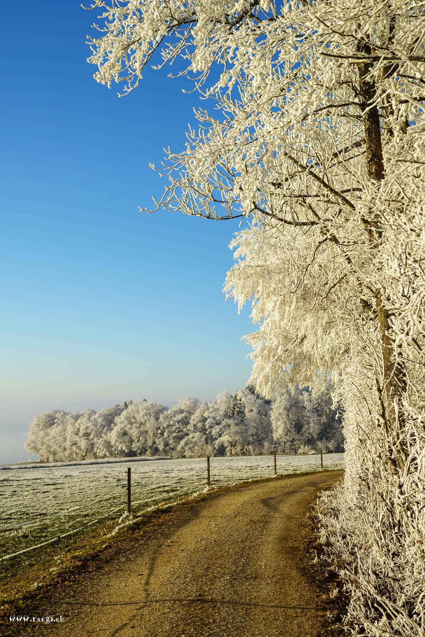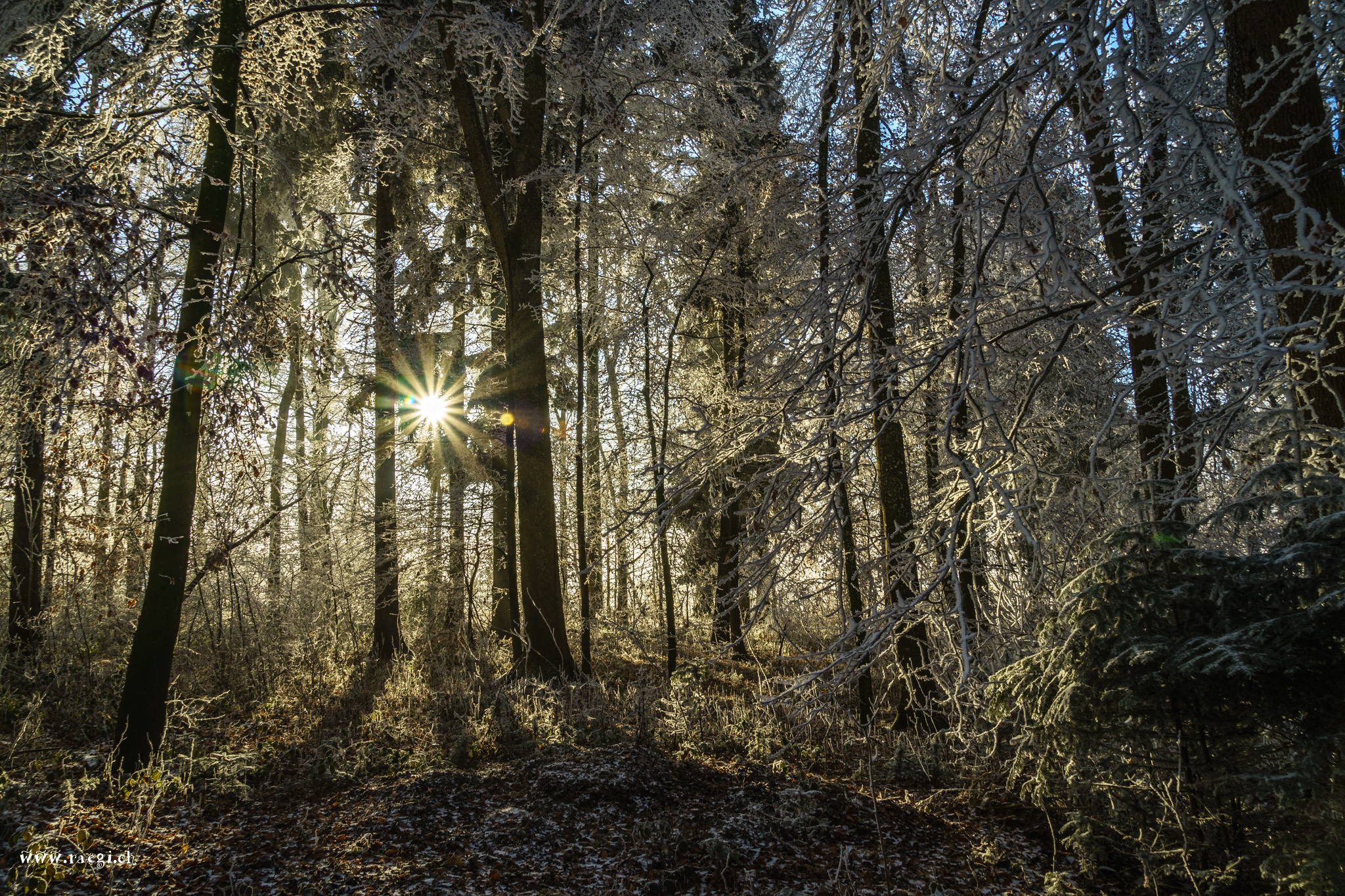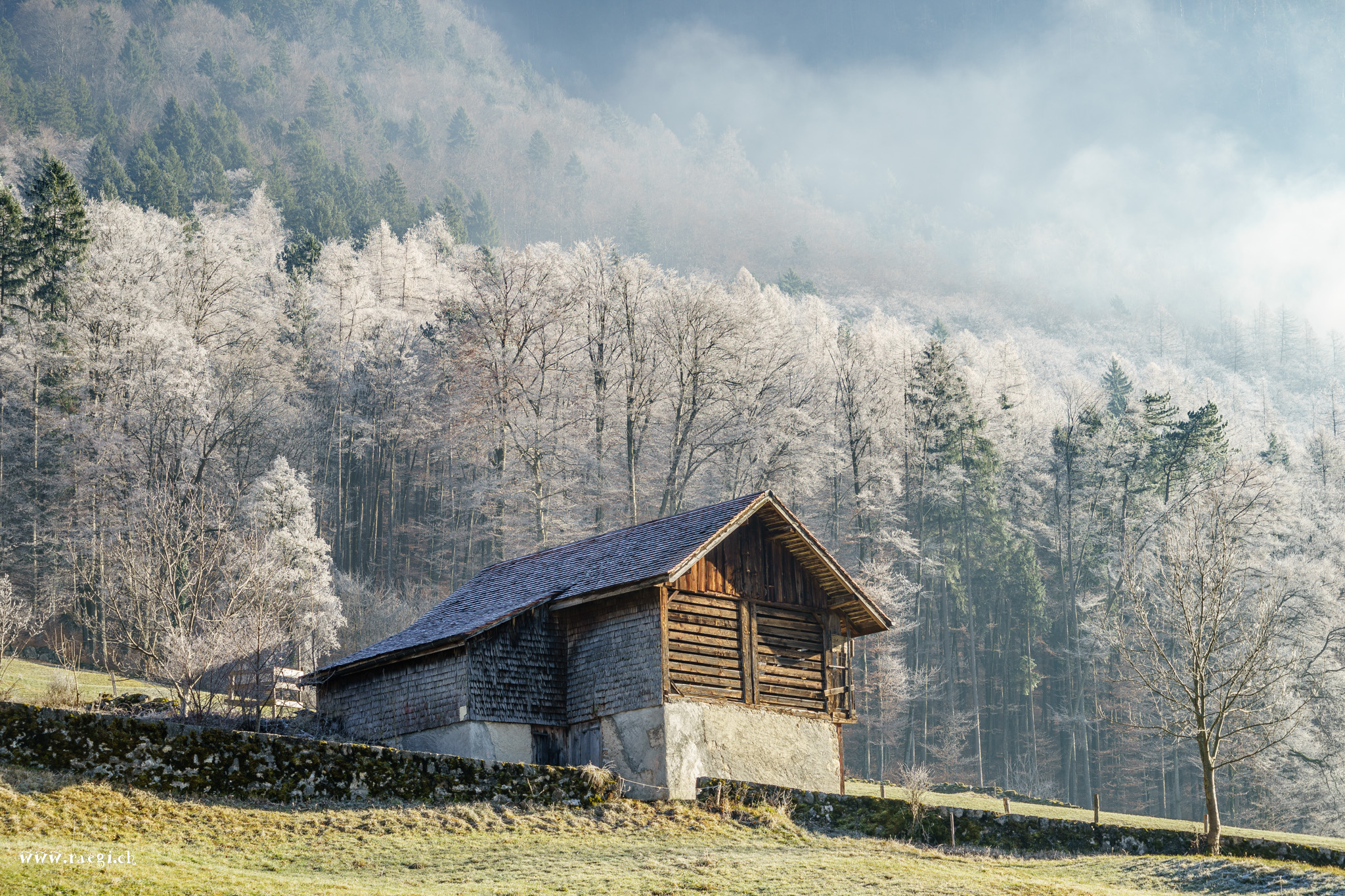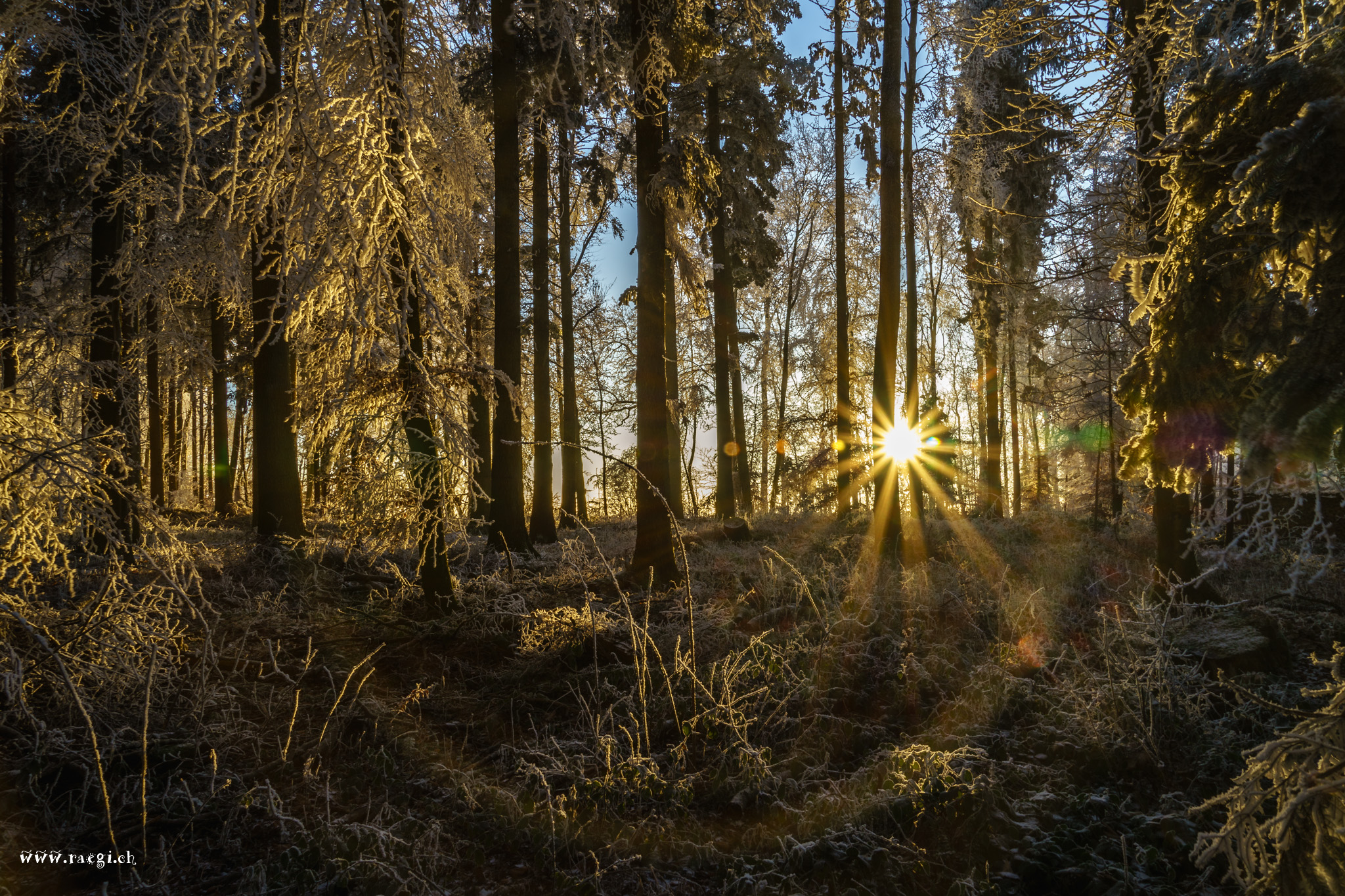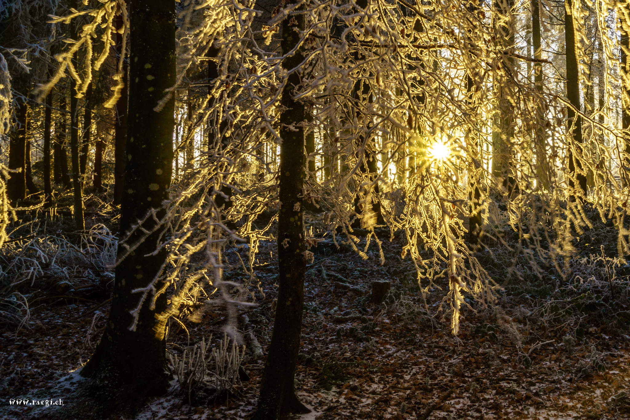 Nebel, der sich vor Kälte an die Äste klammert und den Wald in ein Wintermärchen verzaubert. Die Januarsonne täuscht Wärme vor, doch schon ein schwacher Wind lässt die Sonne vorläufig aufgeben, sie versinkt am Horizont und lässt die Landschaft im eisigen Griff des Winters zurück.