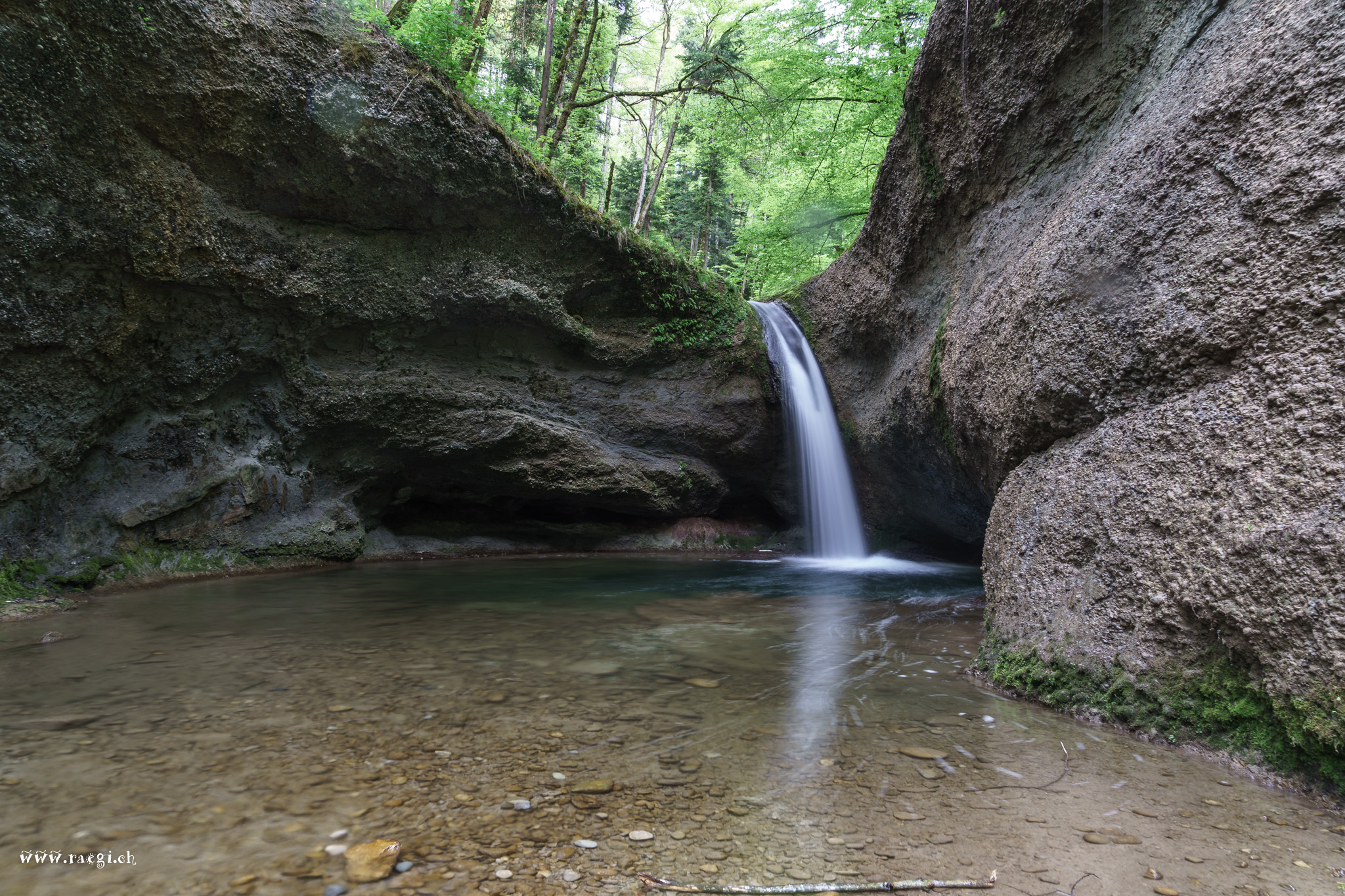Beim Weiler Bläsimühle hats ein Parkplatz und schon nach wenigen 100m erreicht man eine schöne Brötlistelle mit Spielplatz. Die Kinder sind zufrieden und ich kann bewaffnet mit Stativ den Bach erkunden. Nach ca. 5min laufen erreiche ich den ersten Tobelbachwasserfall. Ich bin erstaunt, dass dieser schöne Wasserfall nicht mal dem Tante Bethli bekannt war. Aber meistens kennt man ja fremde Länder besser als vieles, was vor der Haustüre liegt..