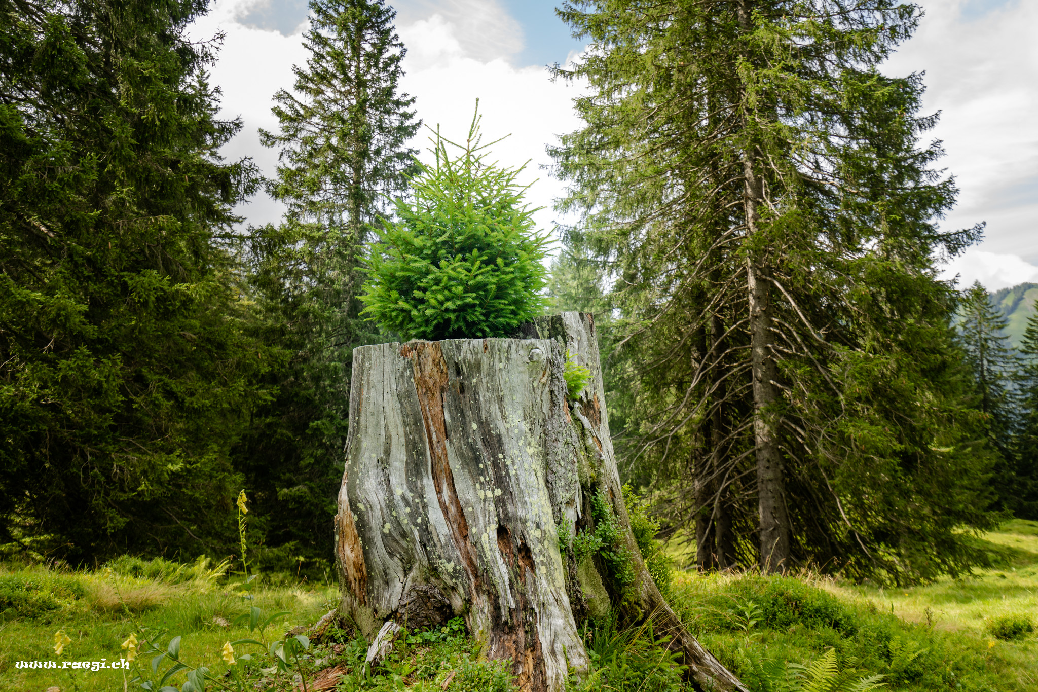 Ein Baum Wächst auf einem Baumstrunk