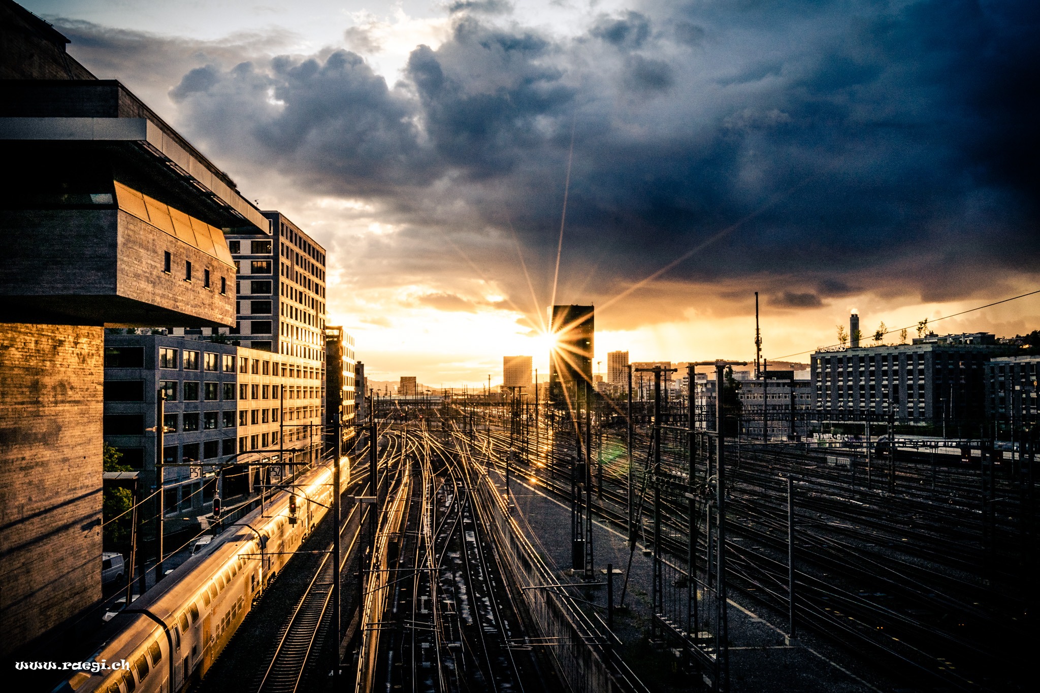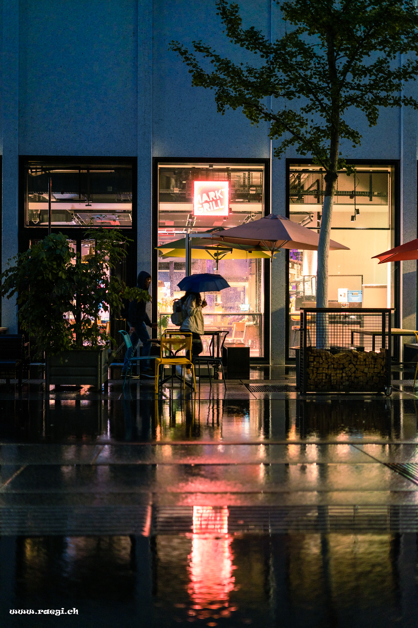 Mein Highlight war wohl, dass ich auf dem Negrellisteg ein Foto über dem Zaun machen wollte. Das schaffte ich, in dem ich den Auslösetimer auf 10s stellte und dann die Kamera mit Stativ über den Zaun gehalten habe.. Nicht ganz risikolos, aber es funktionierte recht gut. Als es dann zu regnen anfing, mussten wir natürlich noch die Lichtspiegelungen auf der Europaallee einfangen und schafften es noch ganz knapp vor Ladenschluss etwas im Hiltl zu essen.