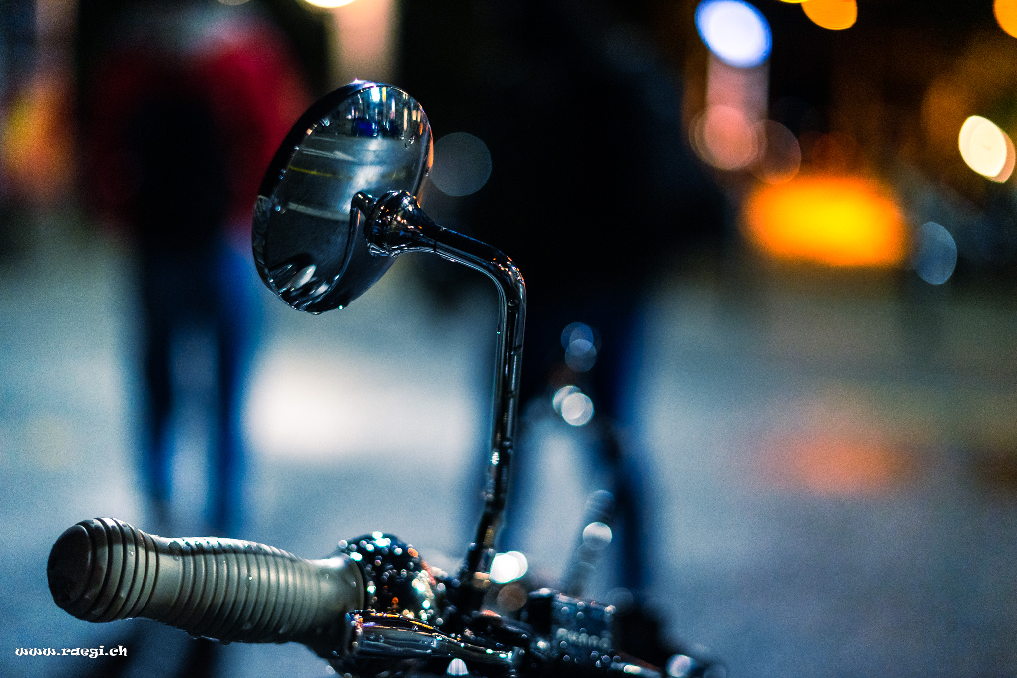 Conny wollte Portrait-Fotos machen und meine Idee war es Strassenlichter festzuhalten. Ich montierte deshalb bewusst mein neu auf Ricardo ersteigertes Fisheye und das extrem kleine, aber lichtstarke 50mm Objektiv mit welchem sich so tolle Tiefenschärfen-Effekte erstellen lassen.