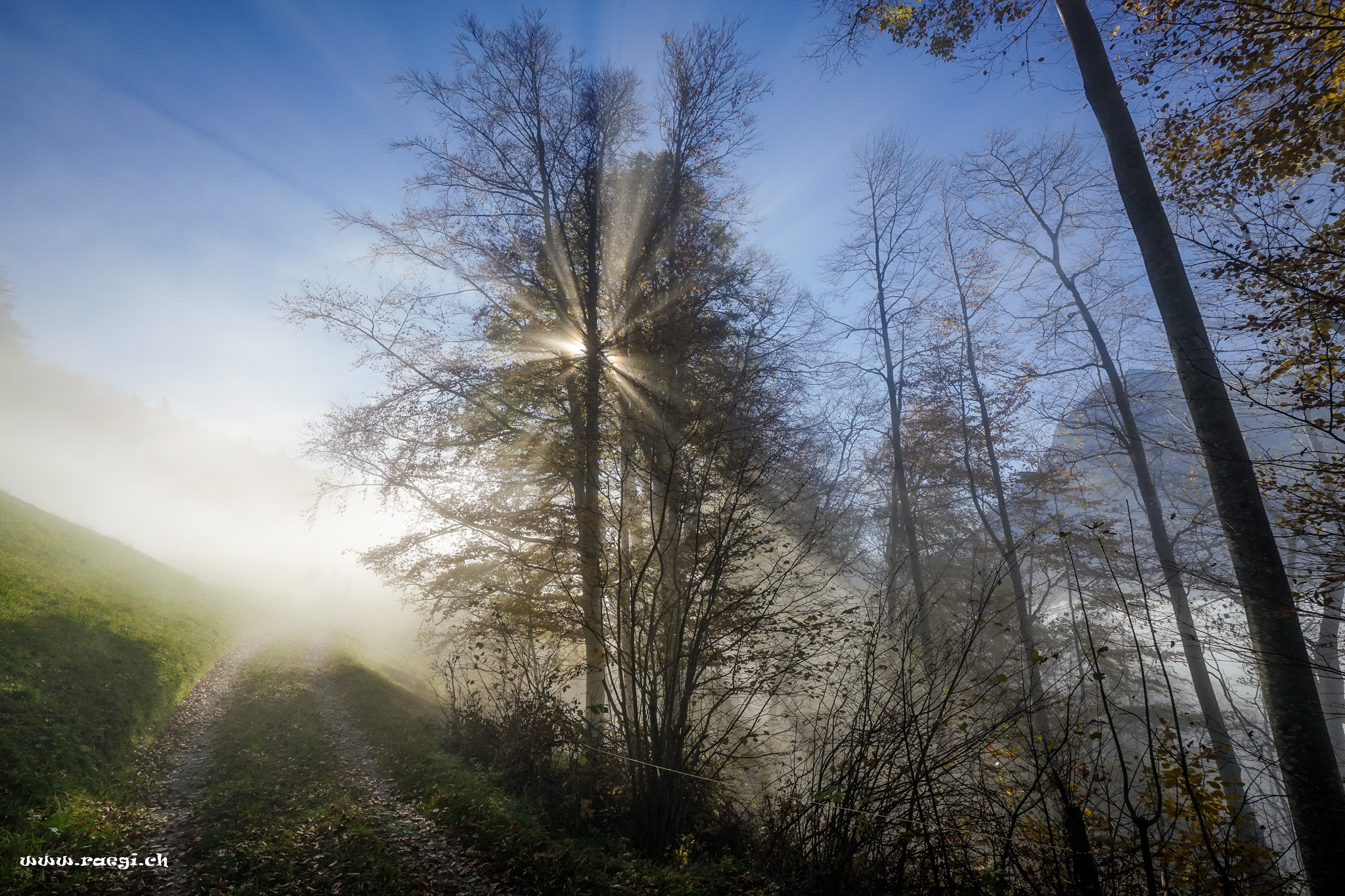 Sonnenstrahlen im Nebel