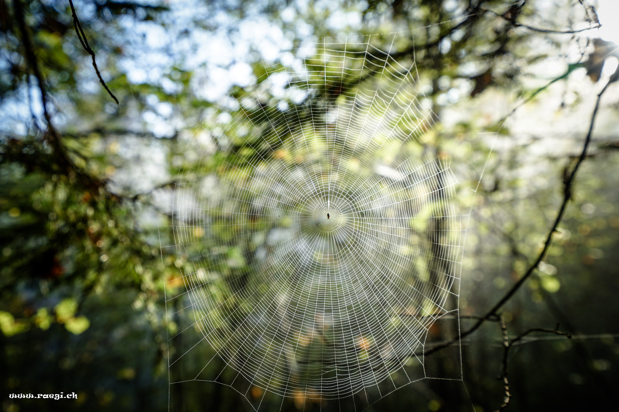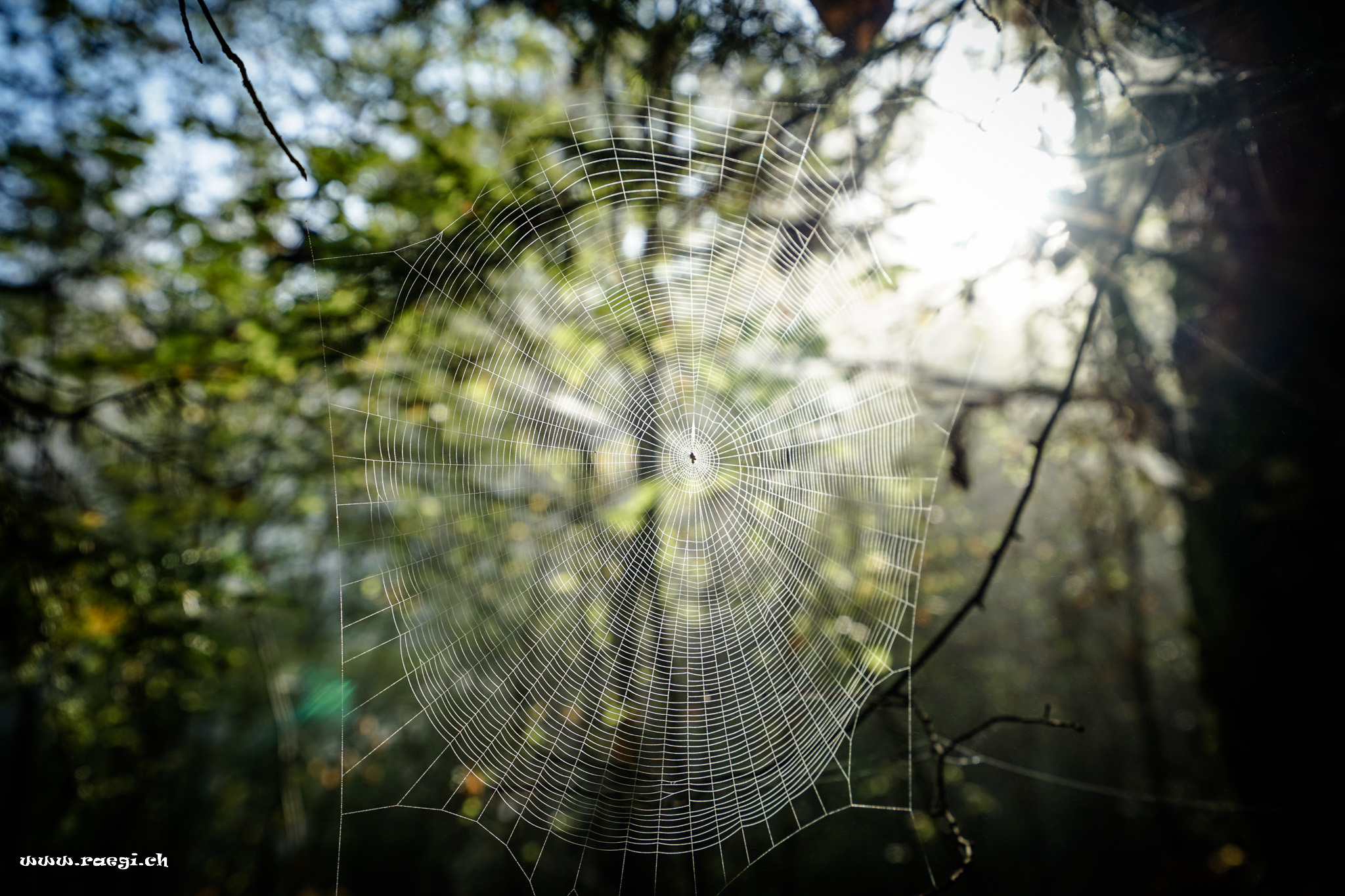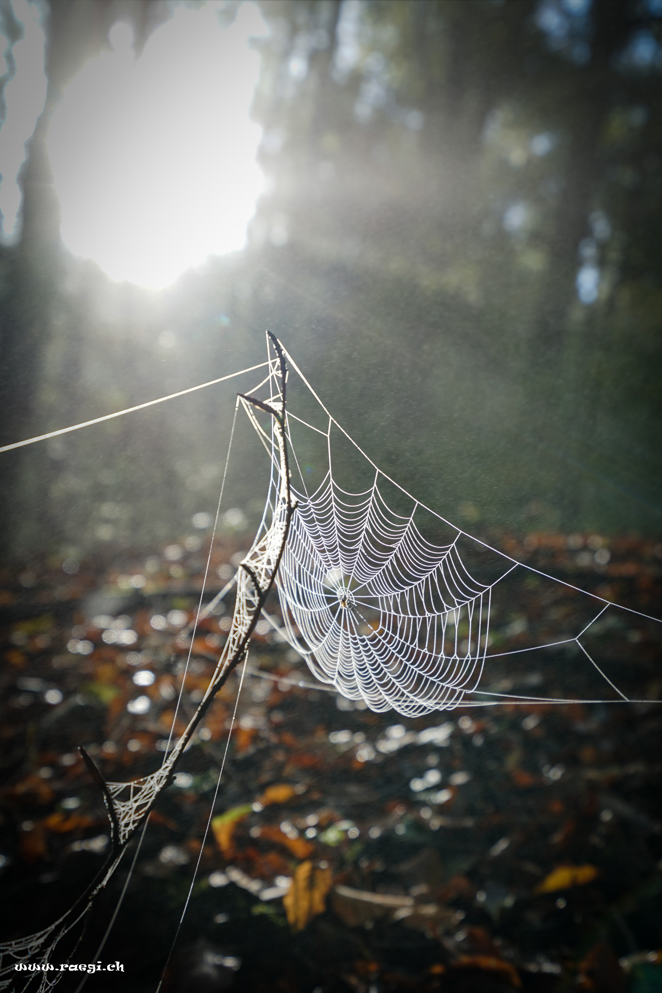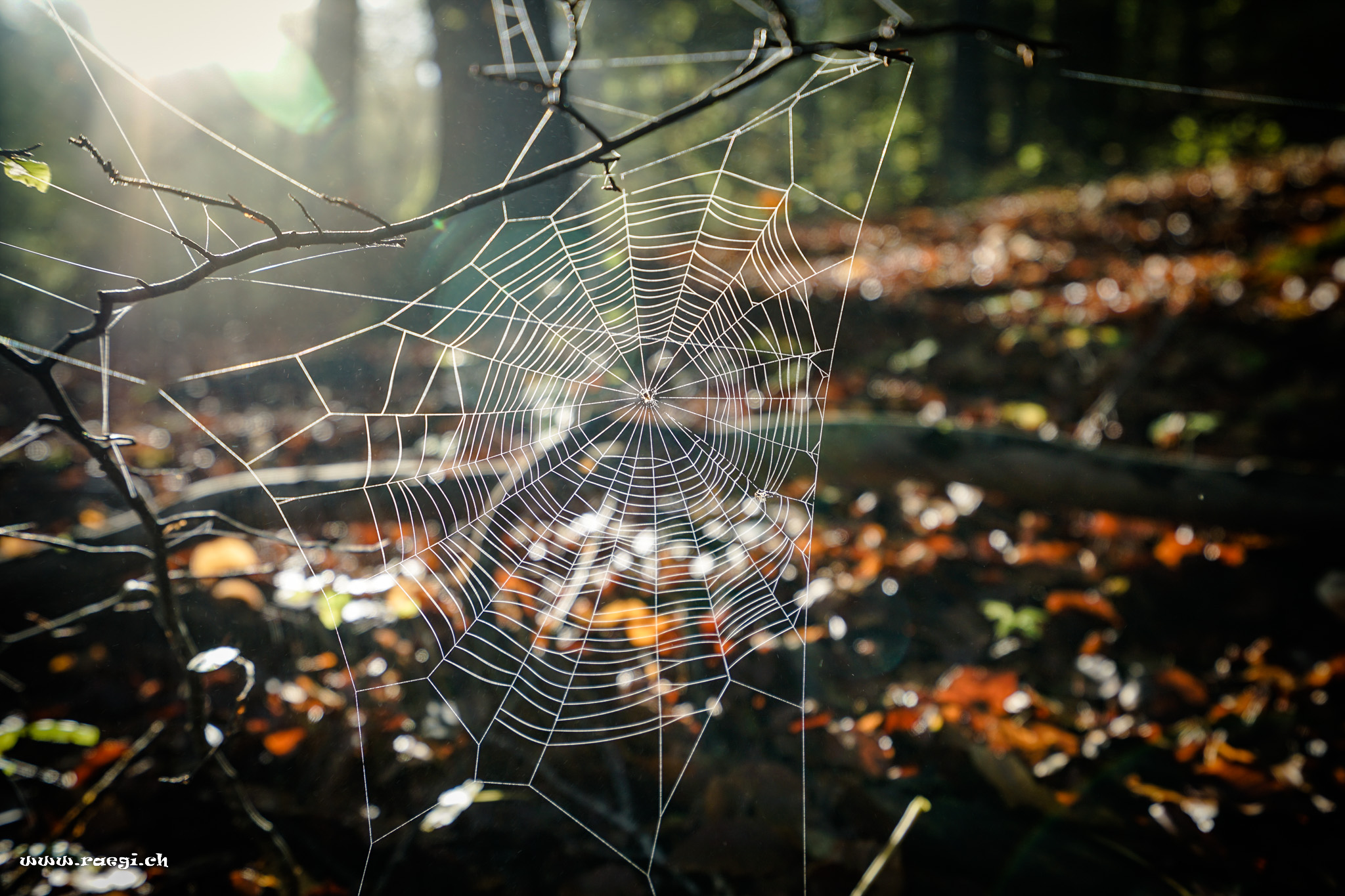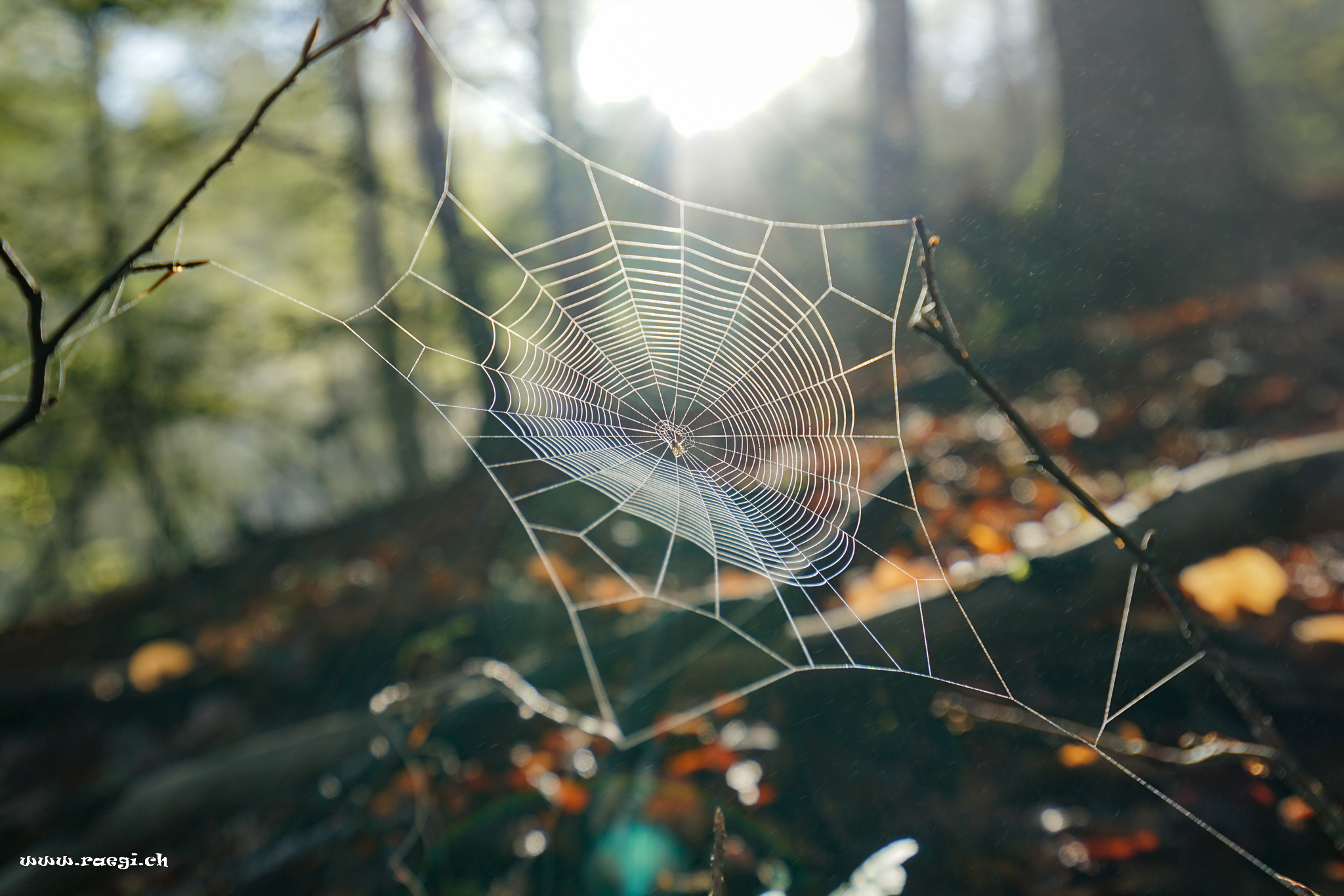 Spinnennetz im Herbstwald