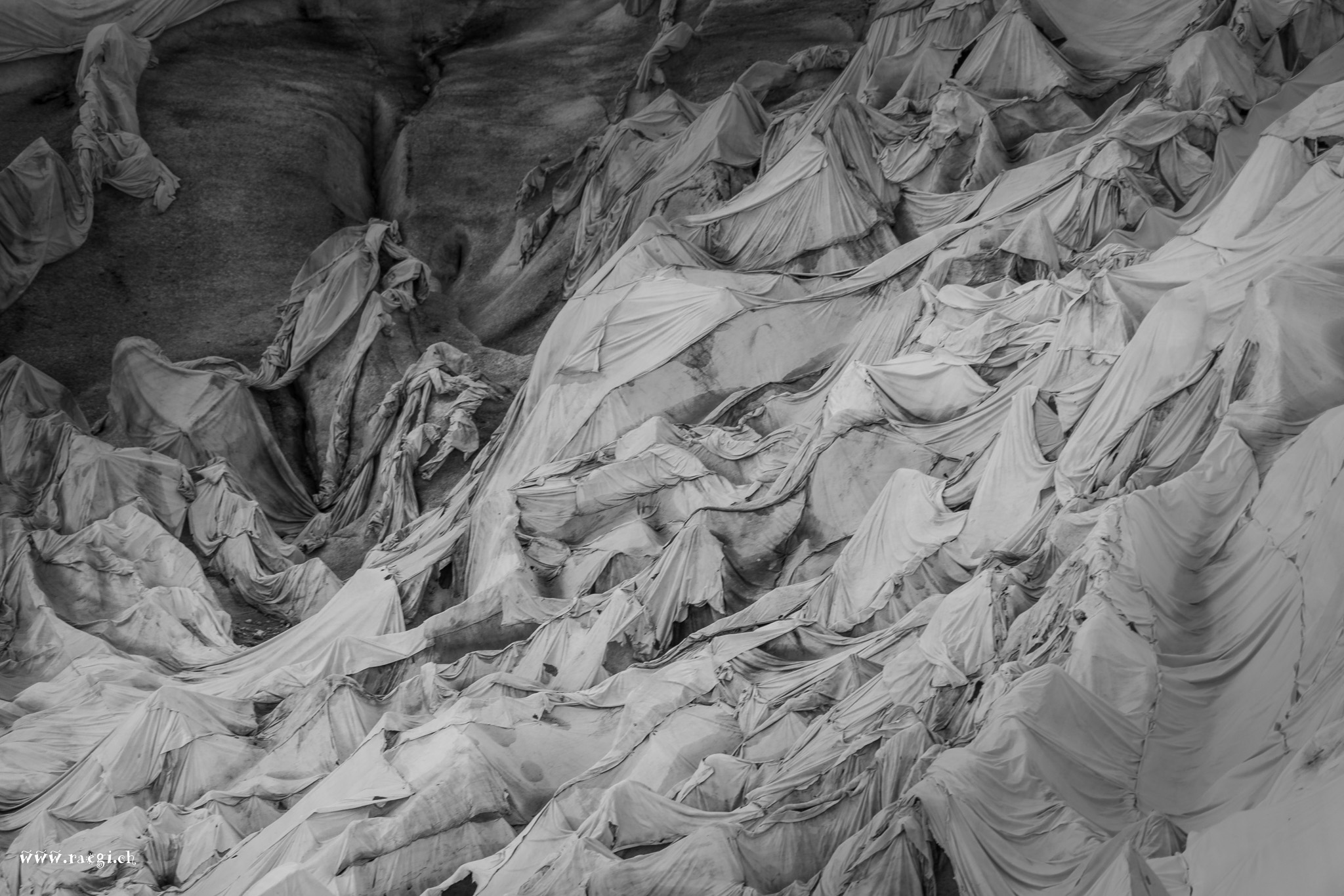 Plachen um den Rhonegletscher abzudecken