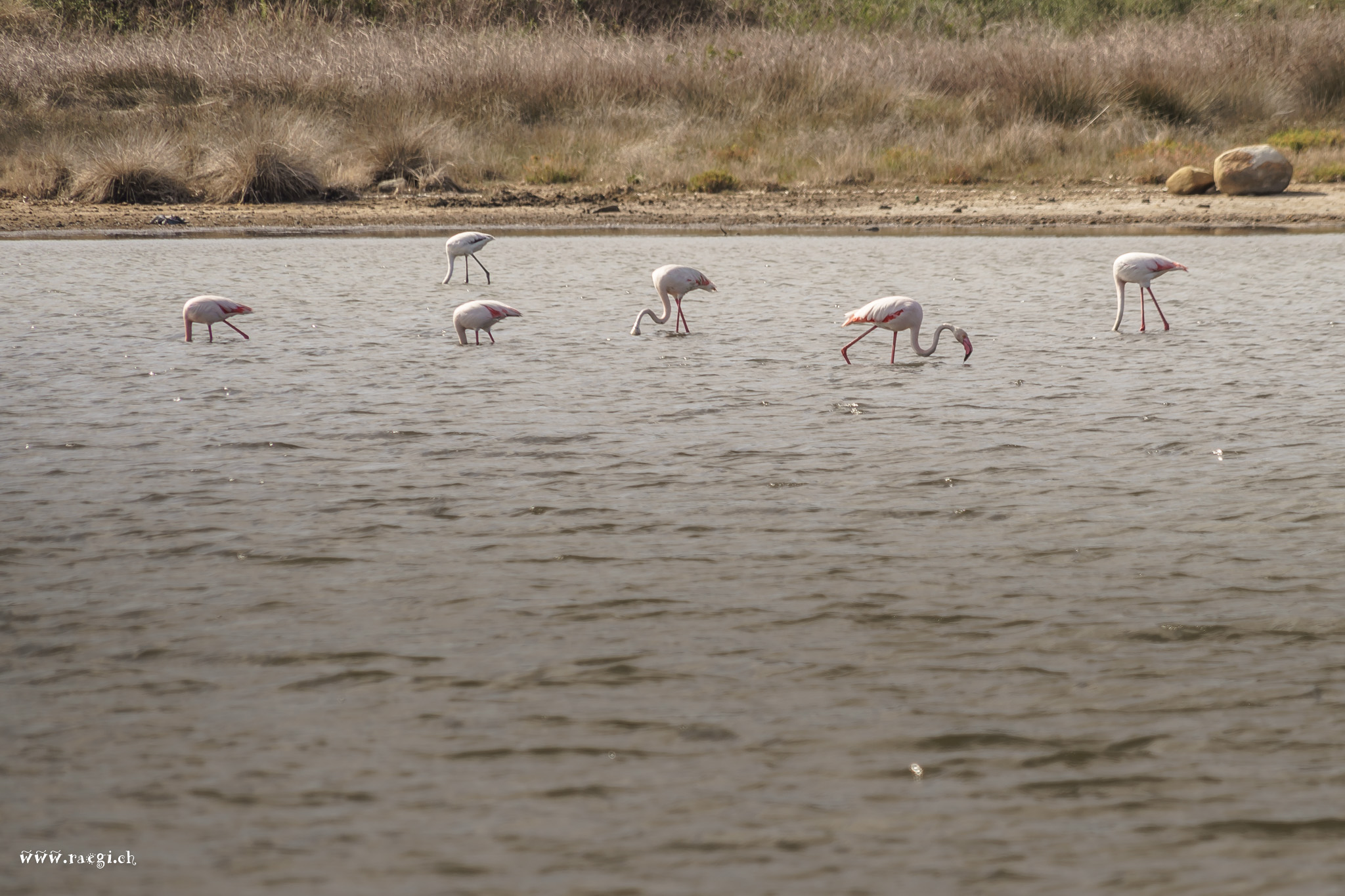 Eine Flamingo Kolonie in Salina, Costa Rei