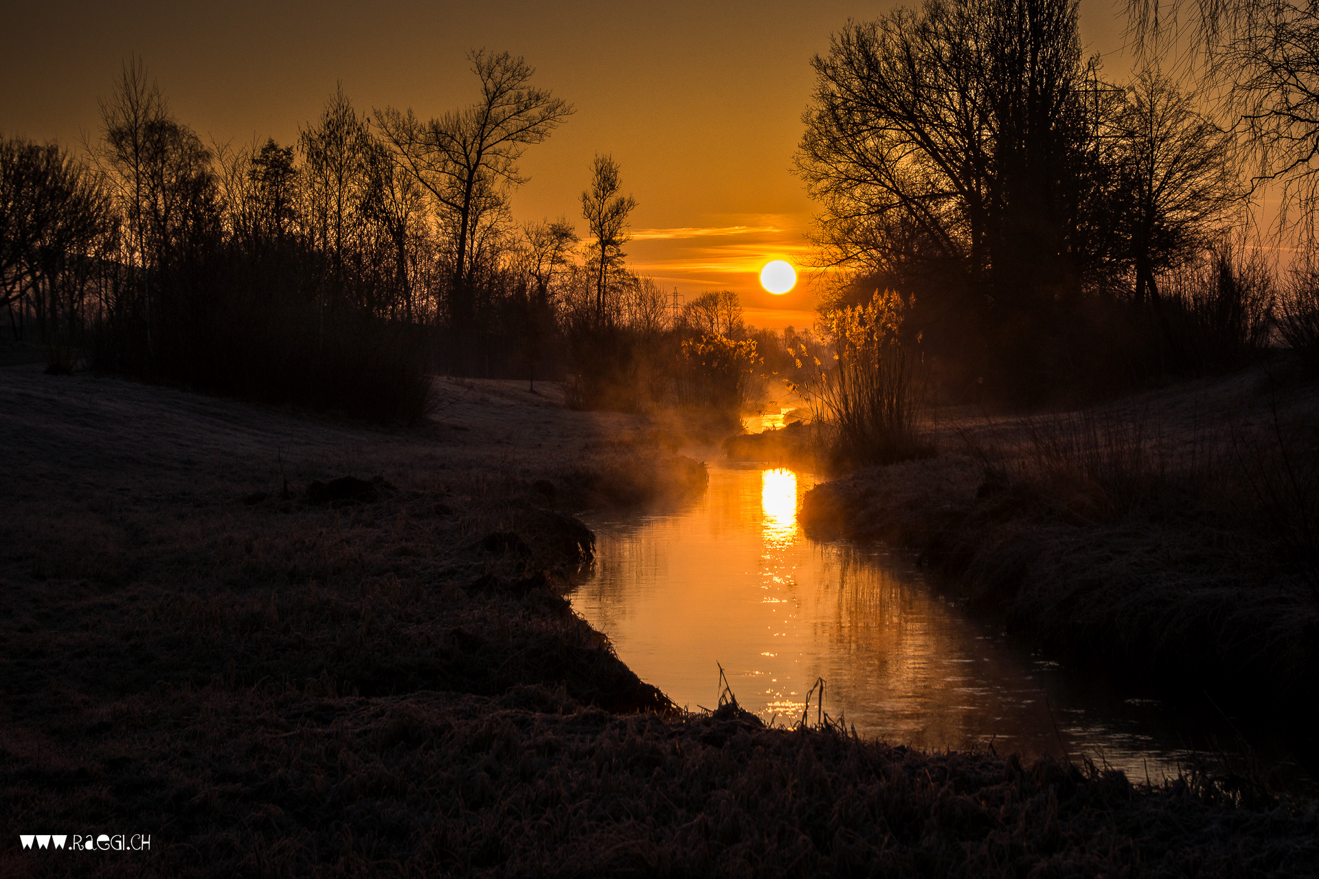Ein kleineres Naturschauspiel bot sich mir diese Woche aber auch am Furtbach. Auf meinem Arbeitsweg mit dem Fahrrad sah ich, wie sich die Sonne beim Sonnenaufgang gerade im Bach spiegelt. Dieser Winkel ändert sich offenbar auch sehr schnell, denn schon am Mittwoch, war die Sonne etwas verschoben. Also für mich heisst das jetzt, alle halbe Jahre, zwei Tage vor dem Sonnenwunder von Elm steht die Sonne gerade über dem Furtbach! 🙂 Kann das Zufall sein?