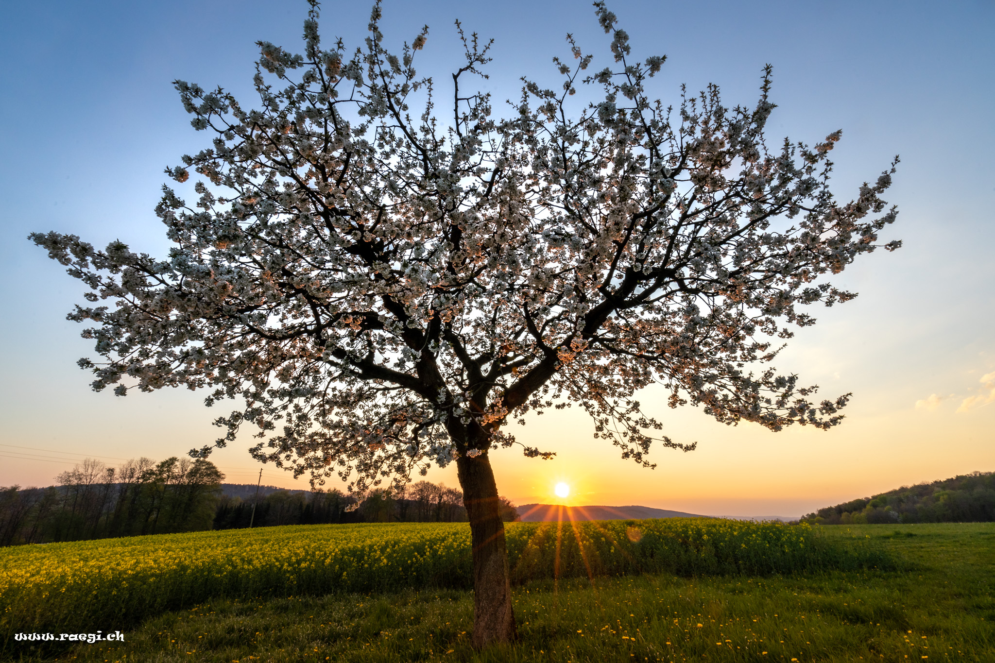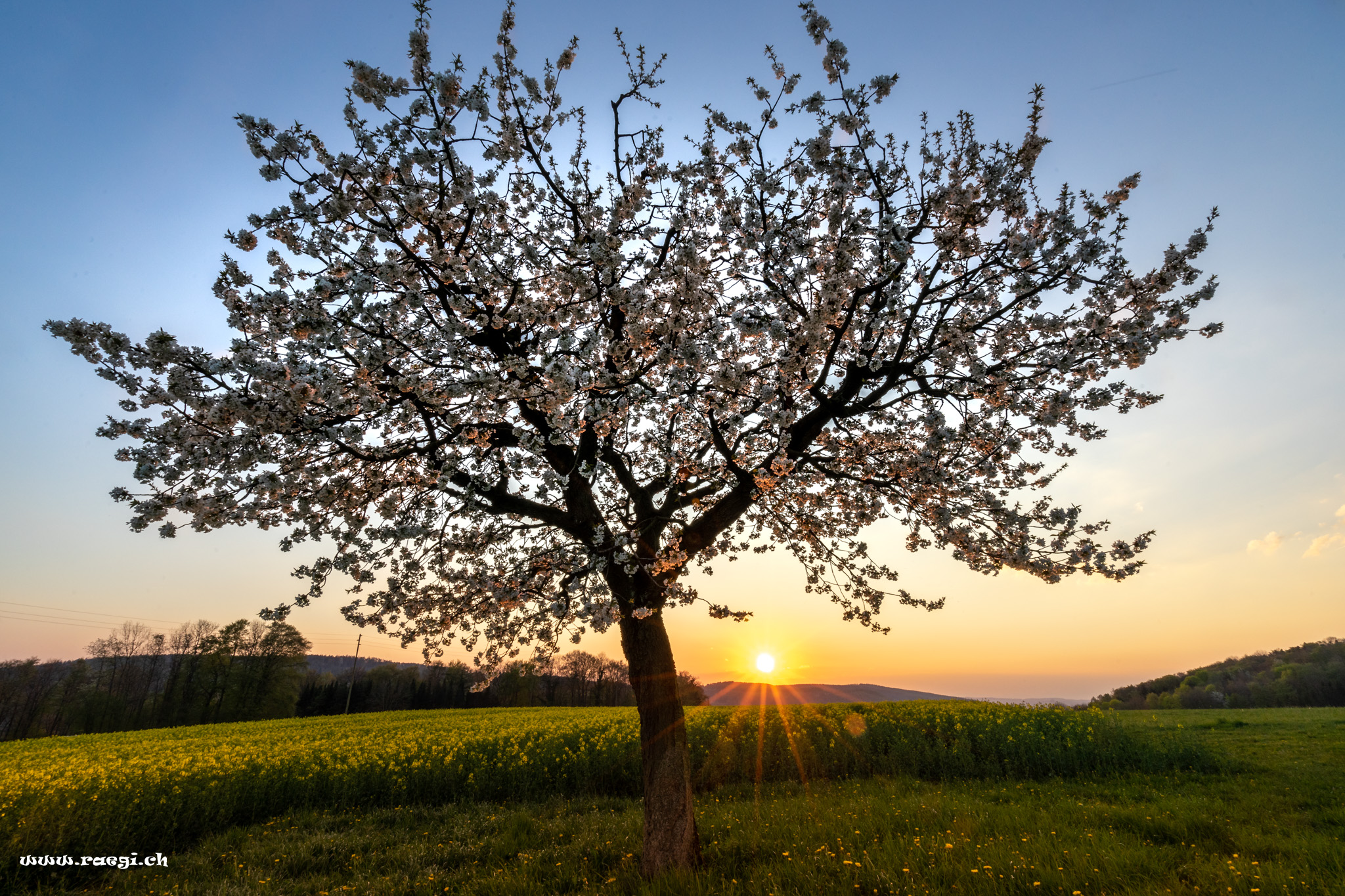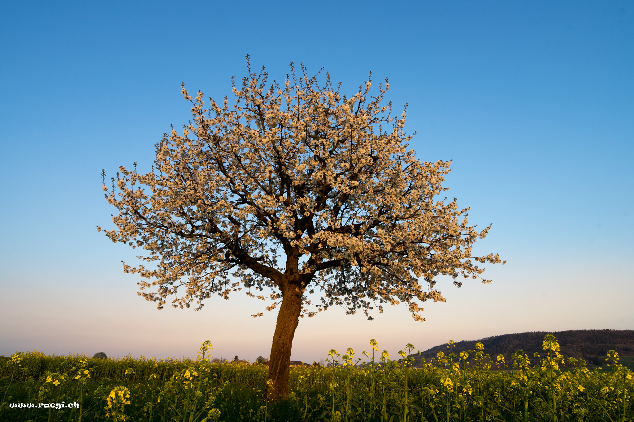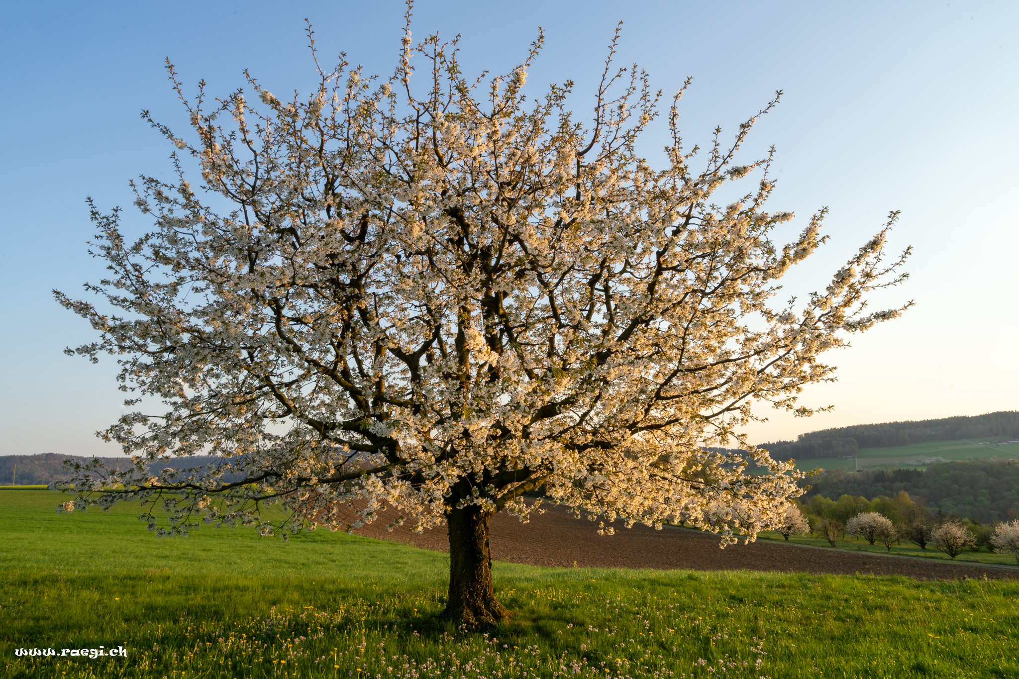 Abendstimmung im Fricktal mit Kirschbaum