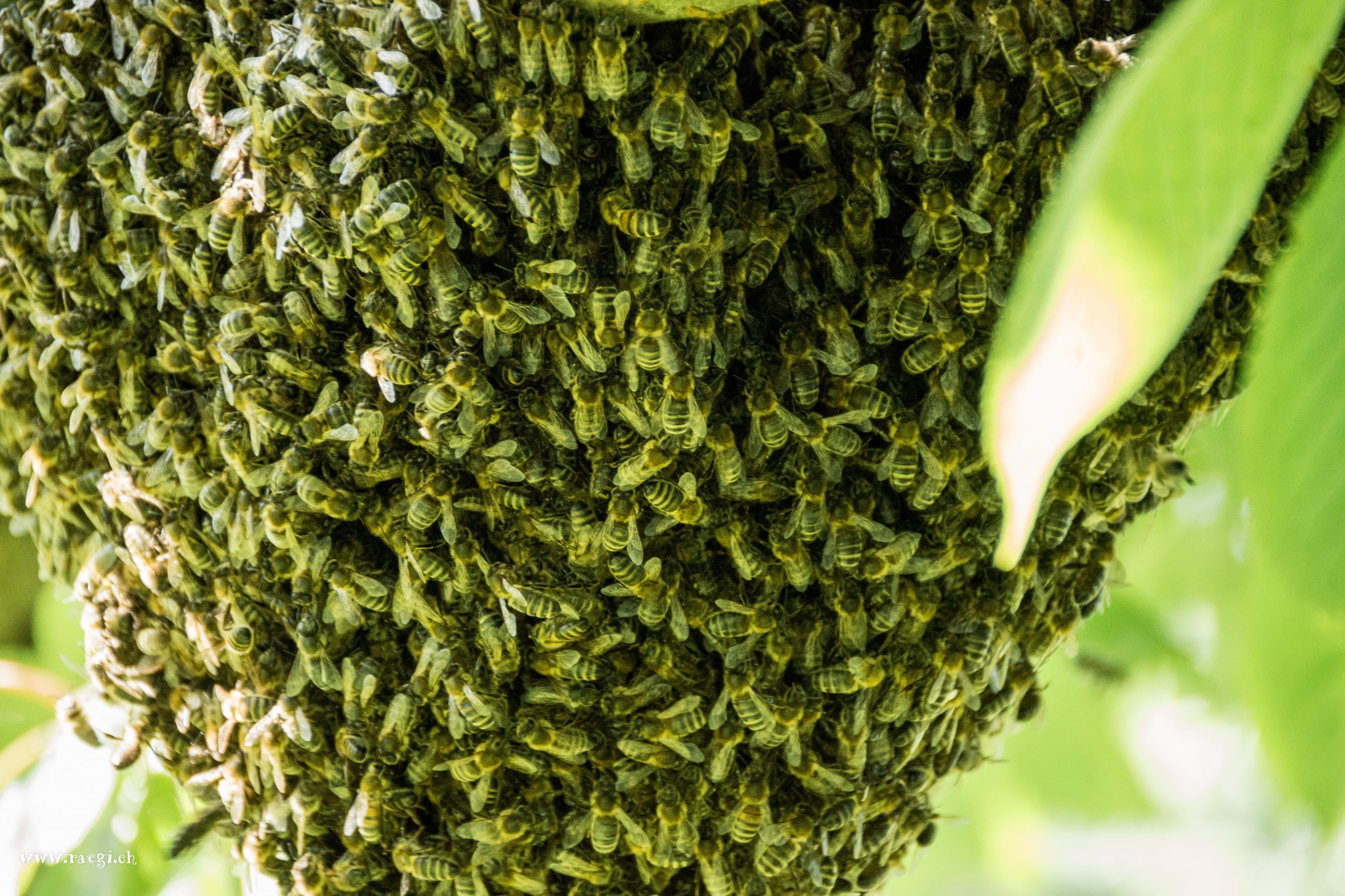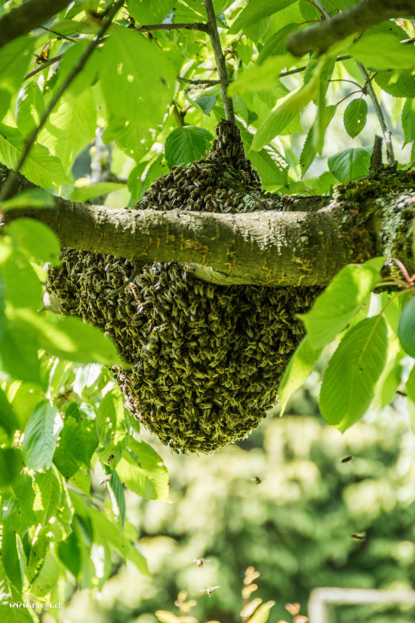 Sehr spannend, wie sich der Schwarm weiterbewegt. Es werden Späher ausgesandt, welche einen möglichst guten Standort für das neue Zuhause suchen, z.B. eine Baumhöhle. Die Bienen bilden dann am Ast eines Baumes eine Traube und machen zuerst mal eine Pause. Je besser ein Späher, (Spurbiene) ein neuer Standort einschätzt, desto wilder macht er den sogenannten Schwänzeltanz. Aufbruchstimmung entsteht jedoch erst, wenn ca. 15 Spurbienen einen neuen Standort als sehr gut einschätzen.