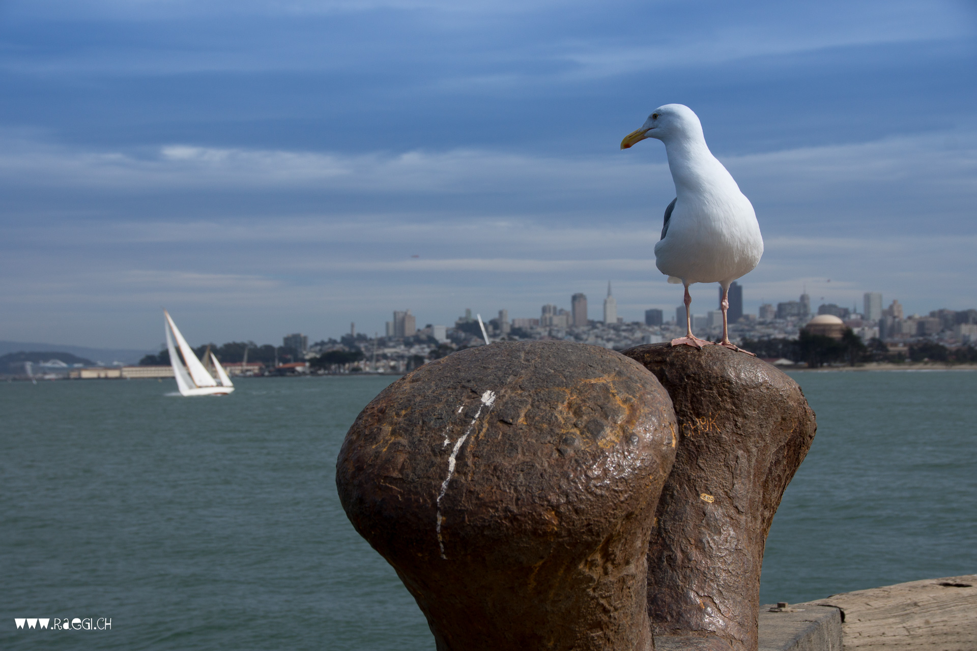Möwe vor skyline San Francisco