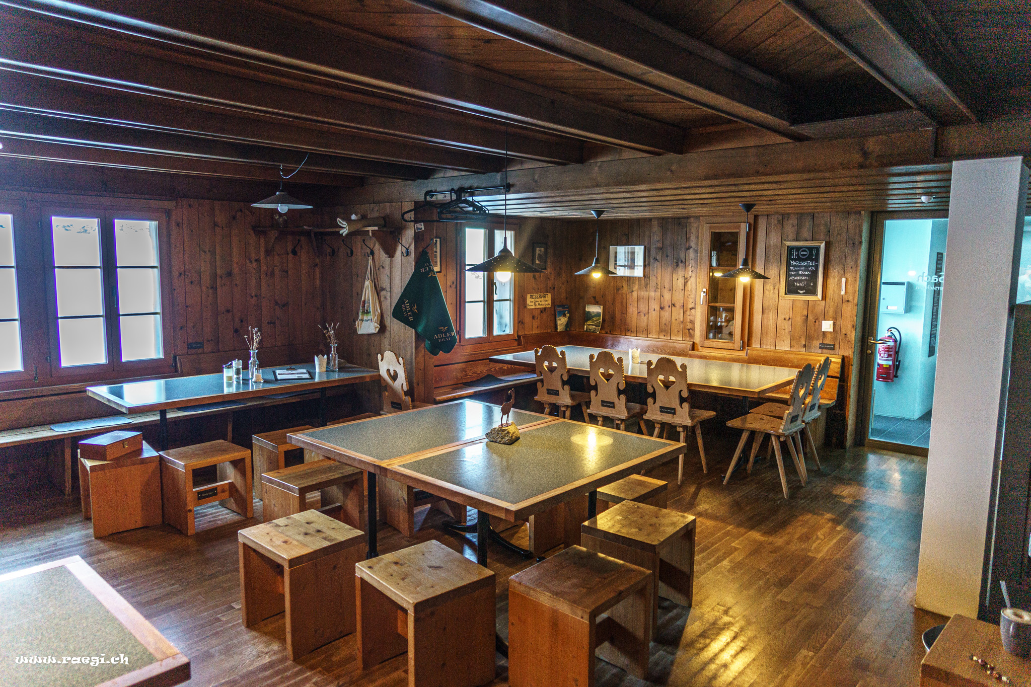 Die Hütte wurde vor einigen Jahren umgebaut und modernisiert hat aber trotzdem noch Hüttenfeeling-Athmosphäre. Das Essen war erstklassig und der Abend in netter Gesellschaft sehr gemütlich. (auch weil wir uns gleich das Plätzchen neben dem Kaminfeuer gekrallt haben)