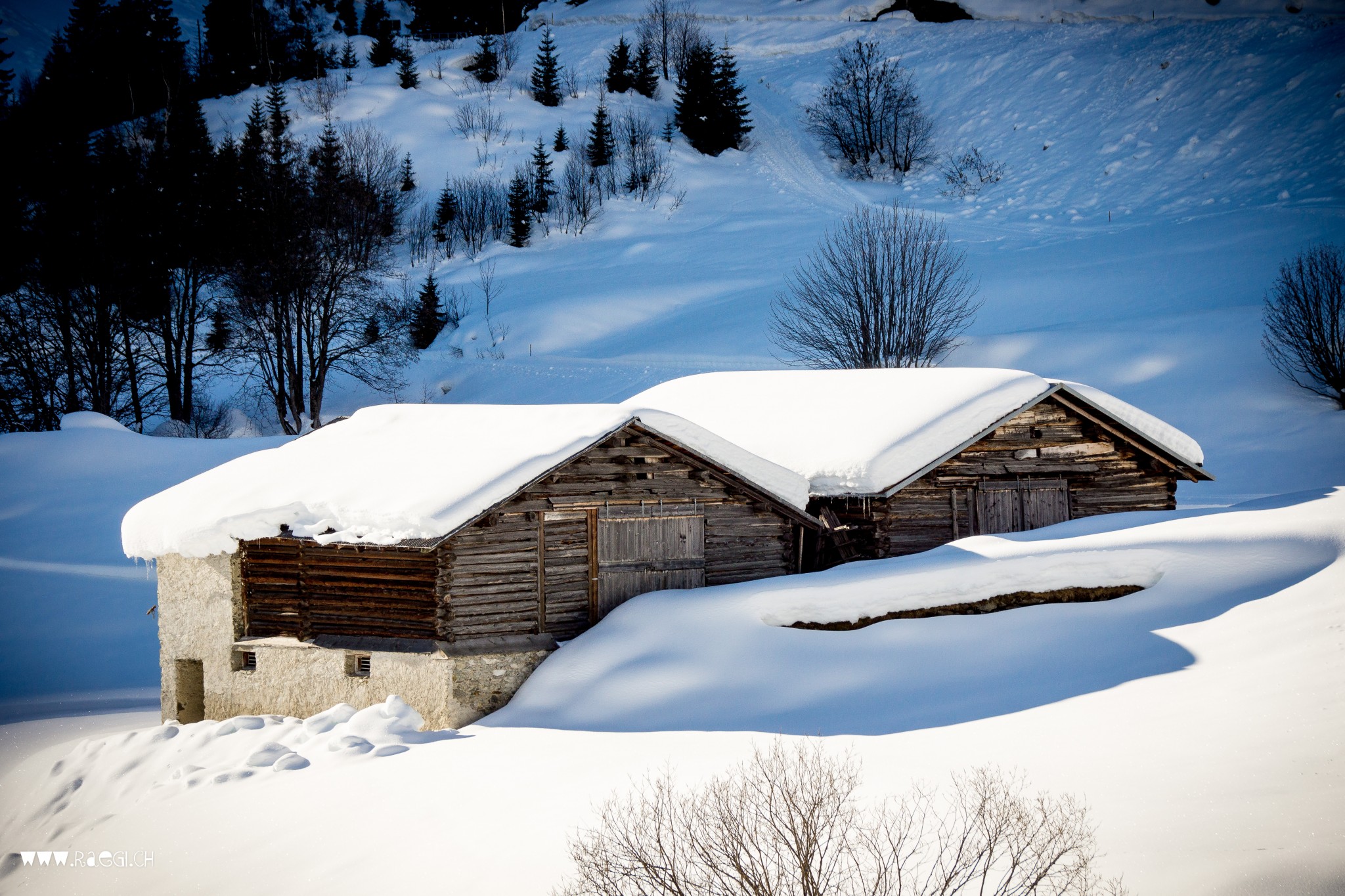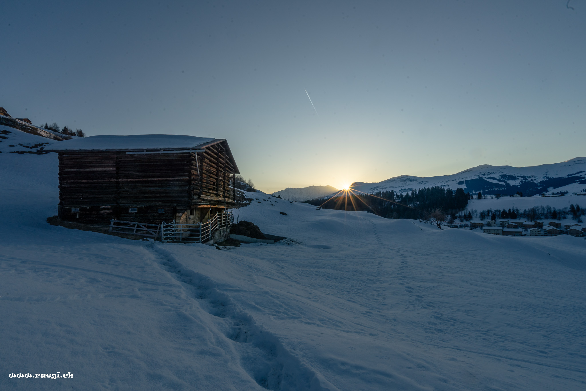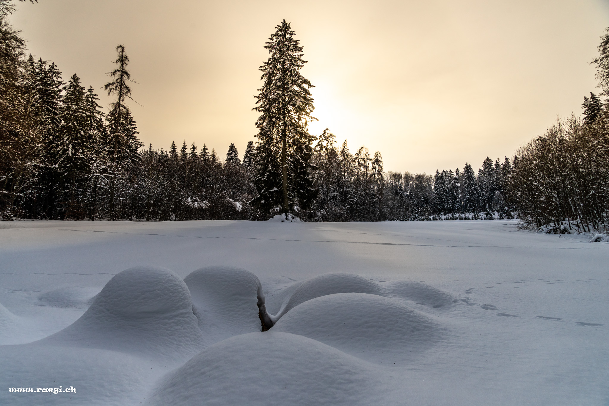 Verschneite Landschaft im Mondlicht auf dem Sulzboden