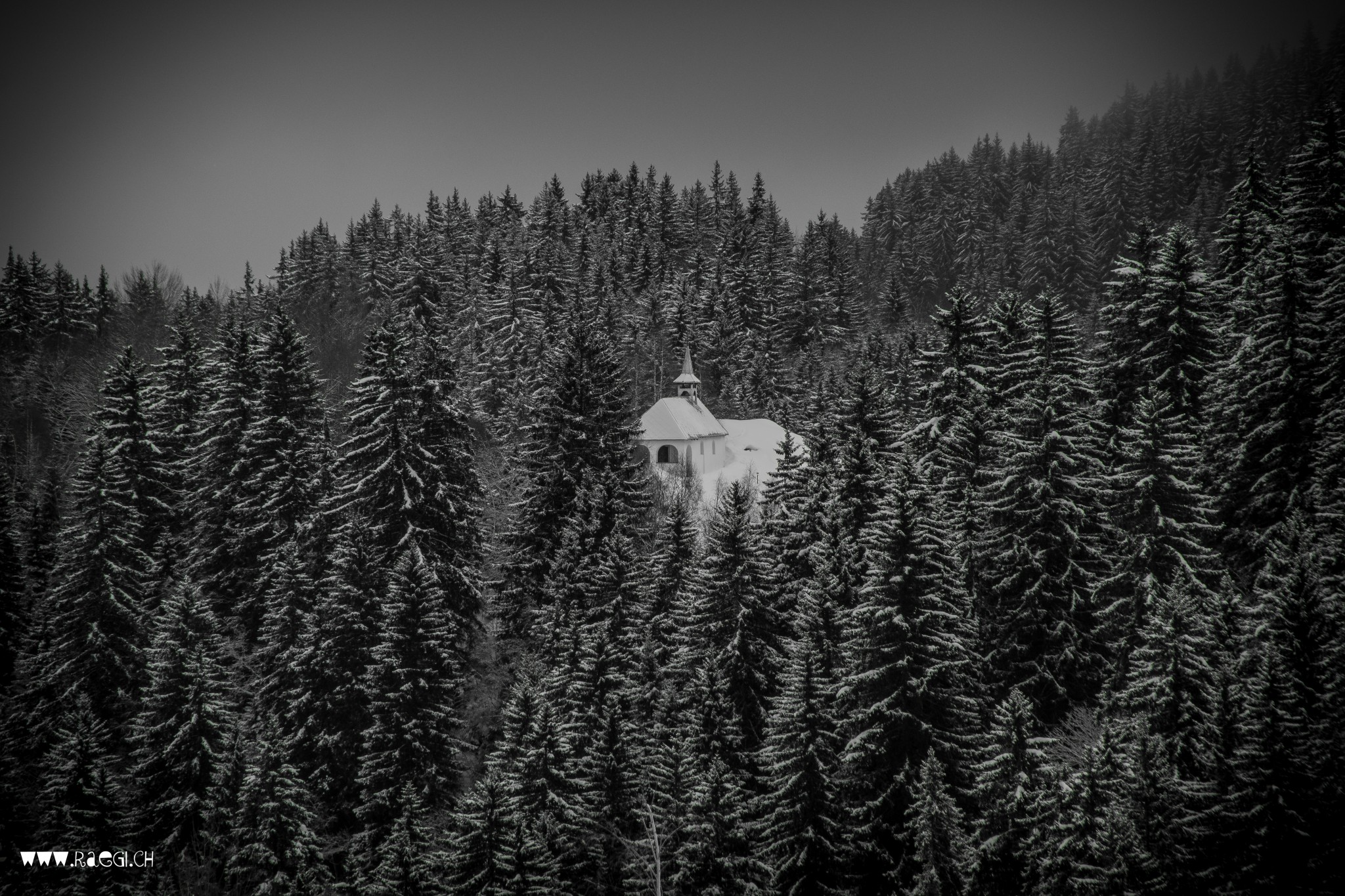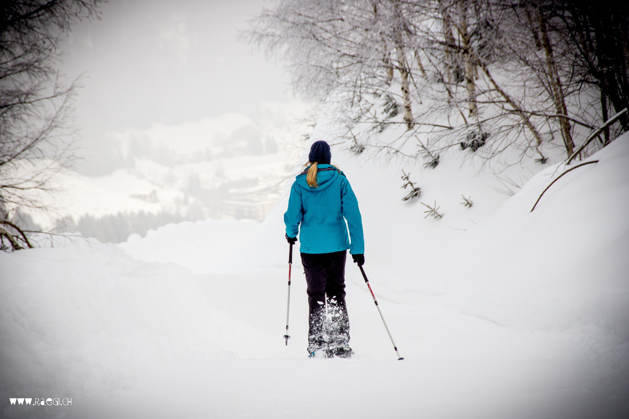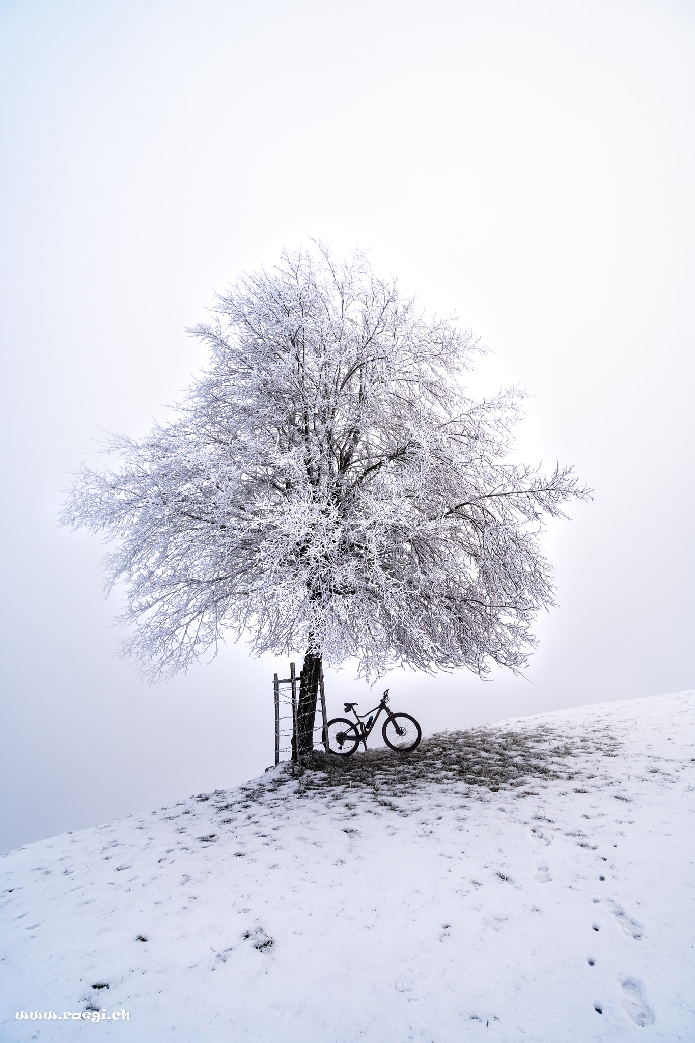 Verschneite Landschaft im Mondlicht auf dem Sulzboden