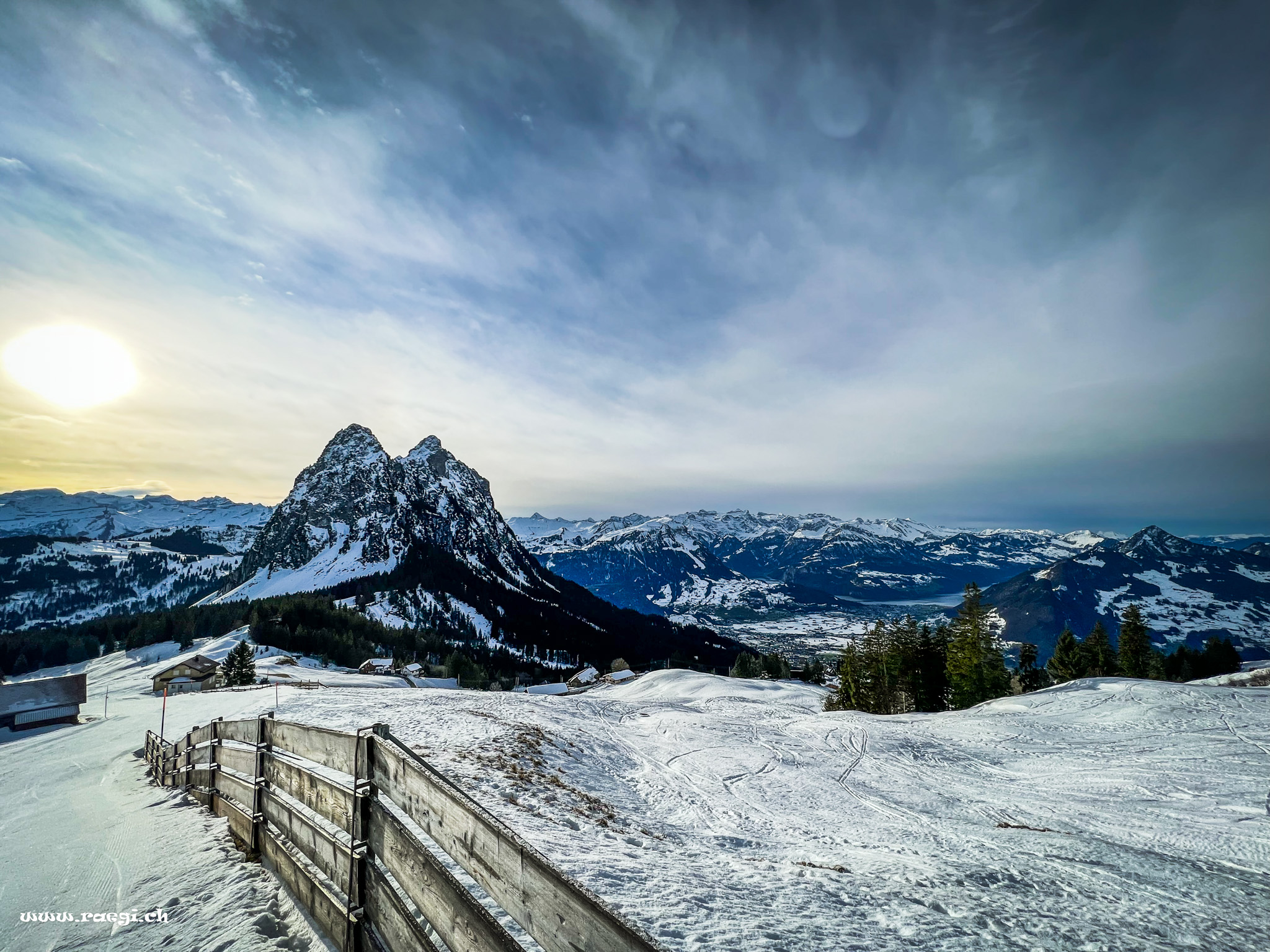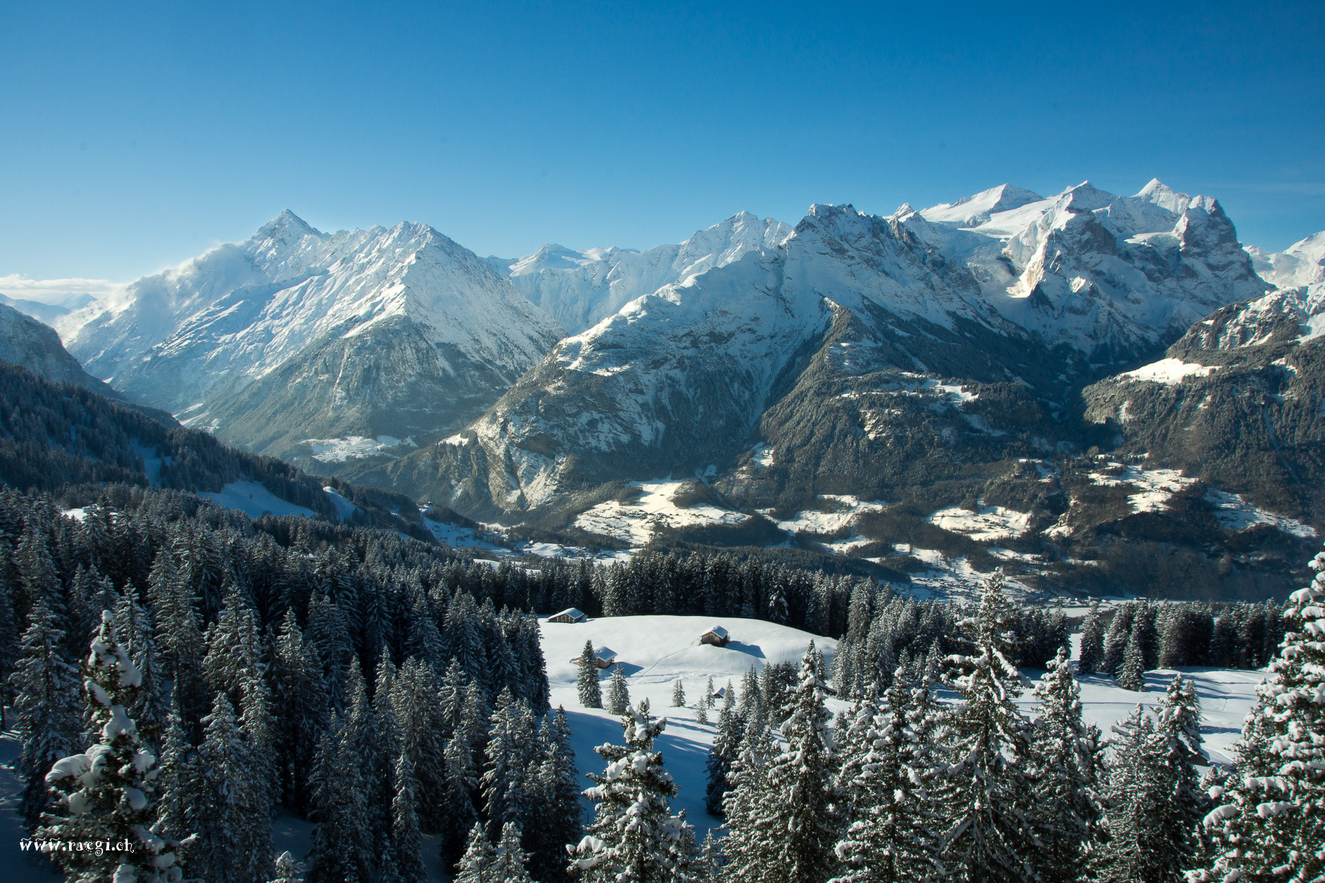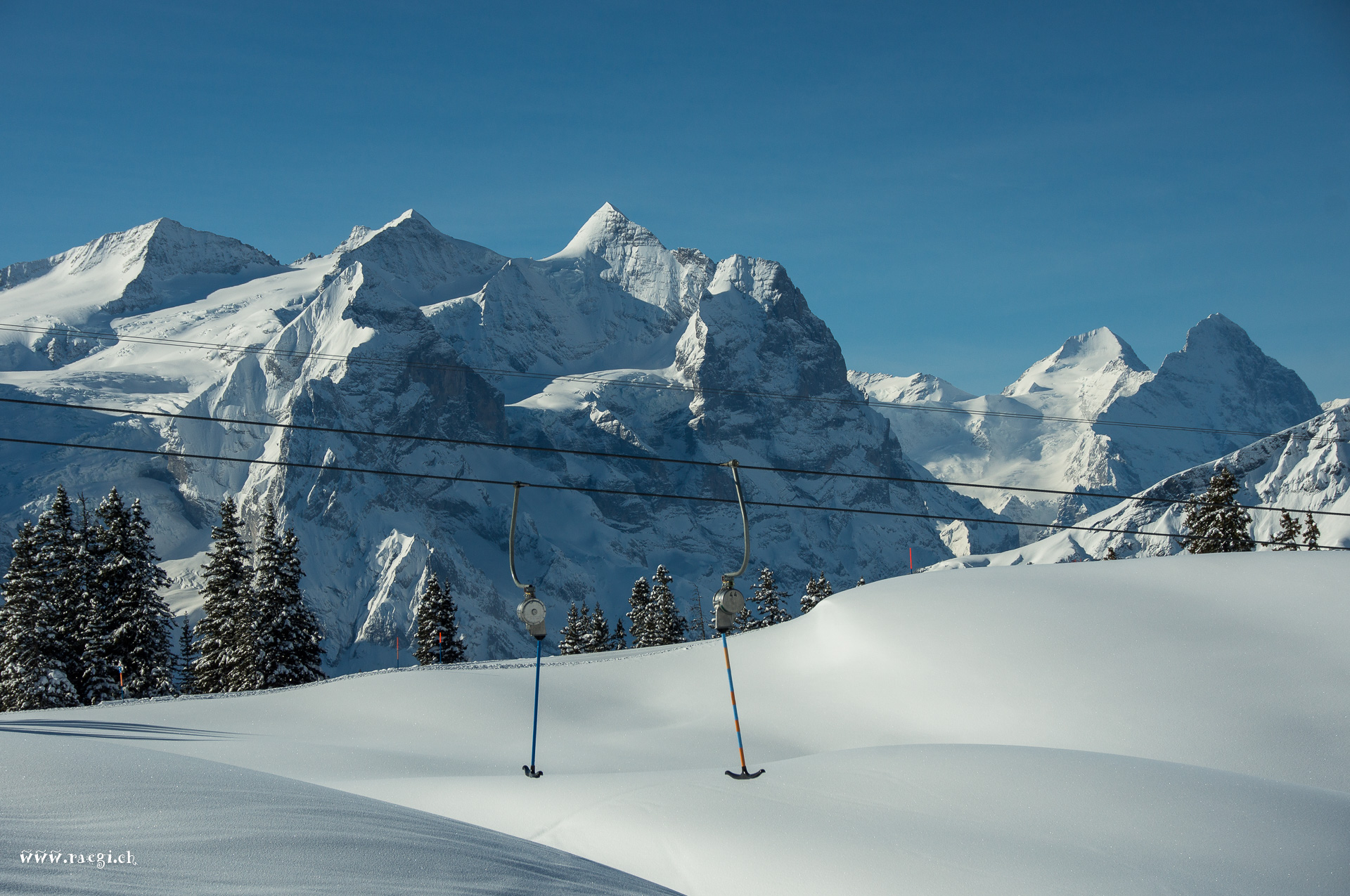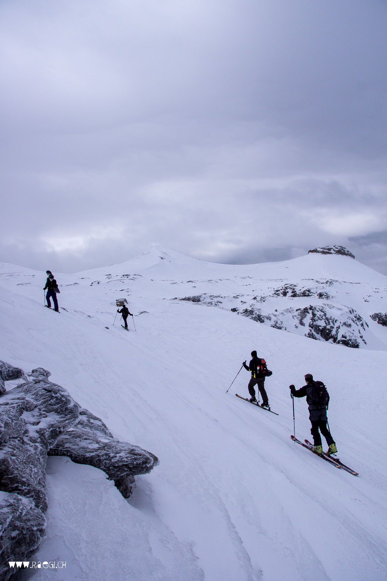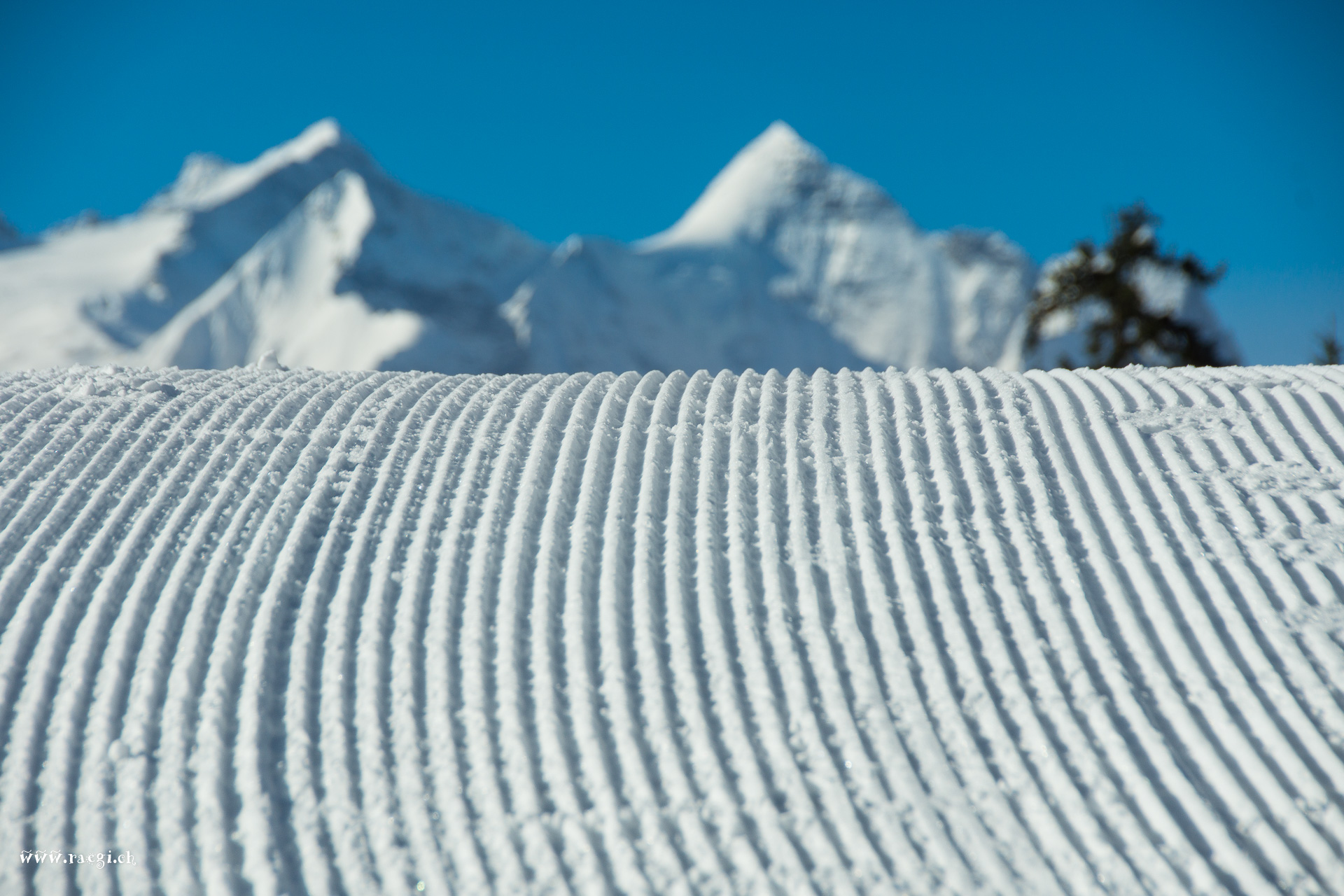 Auf der Pischte immer das tolle Panorama mit Mittelhorn und Wetterhorn im Blick (v.L.n.R.)